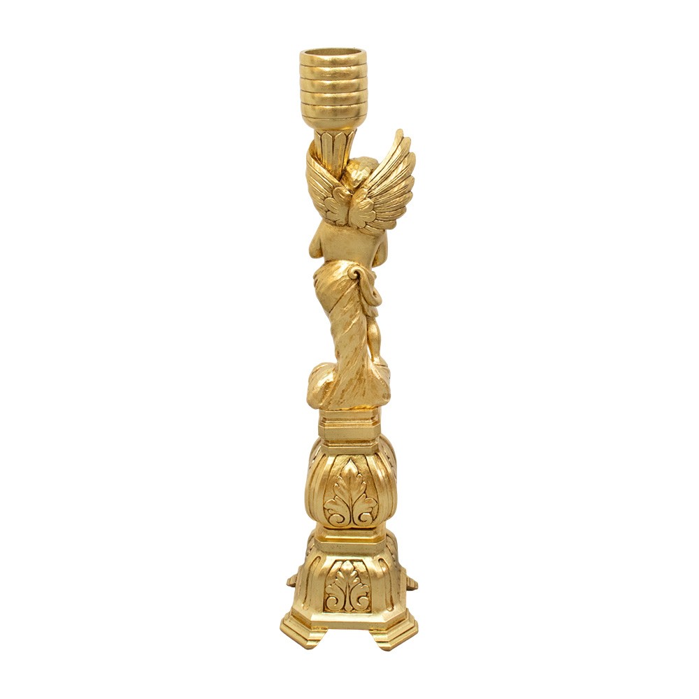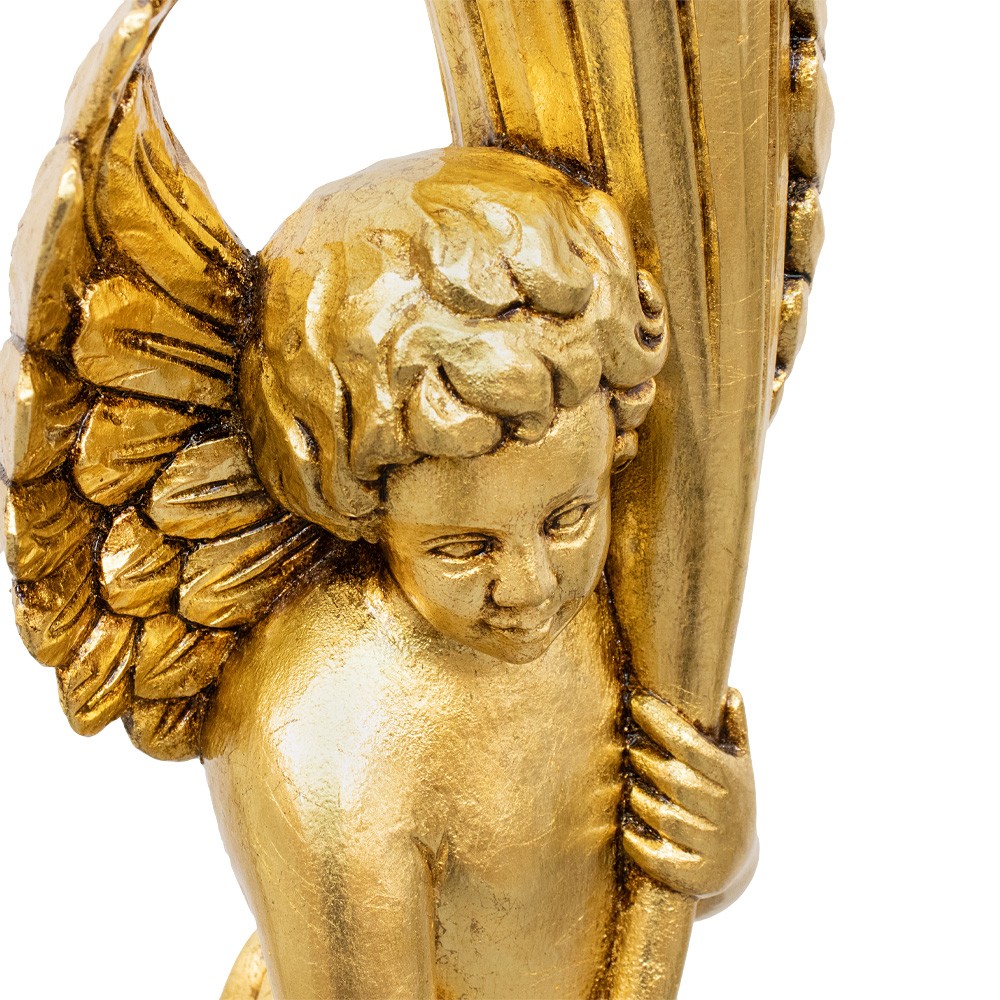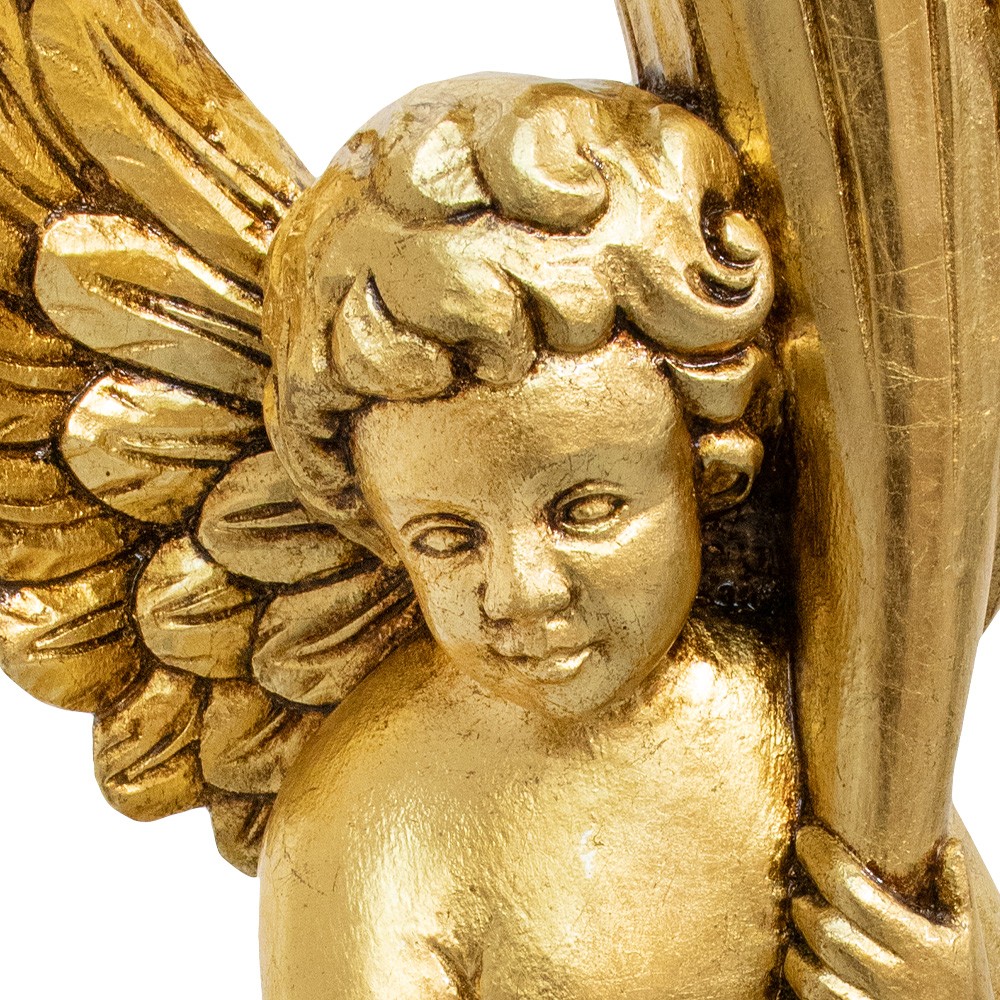 This finely crafted wooden base is entirely made in Italy with artisanal care. The design is enriched by a beautifully decorated angel with a cornucopia and a finely worked base, all covered in gold leaf, adding both elegance and spirituality.