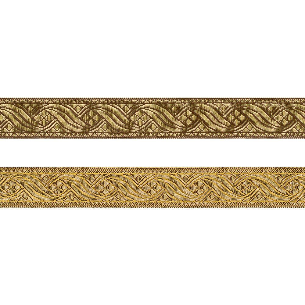 Antique gold galloon available in brown and yellow, height 2.6 cm.