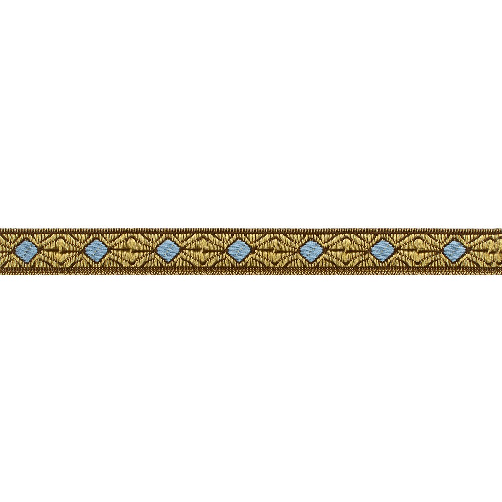 Galloon for sacred vestments in lisere gold with antique finish and rhombus pattern embroidery. Height: approx. 1.7 cm.