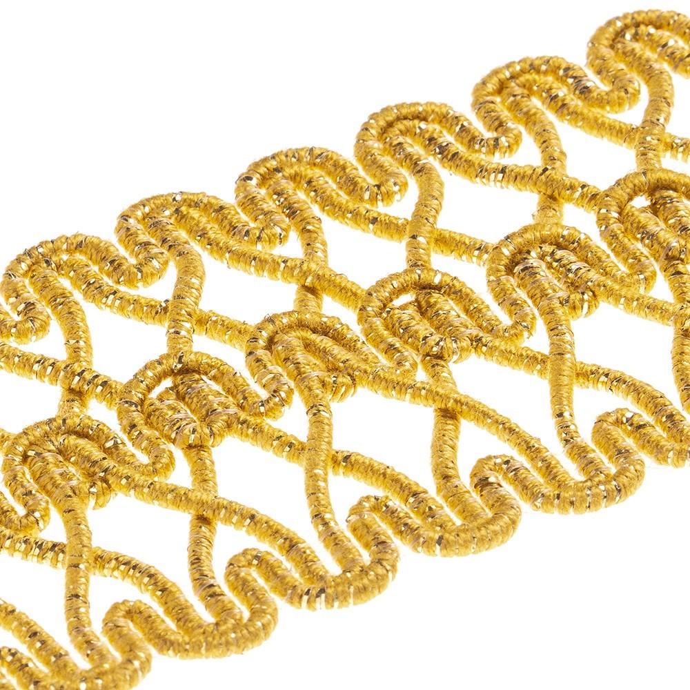 Passamaneria Bordo traforato in lamè color oro. Prodotto made in Italy. Il bordo è alto 5,5 cm.