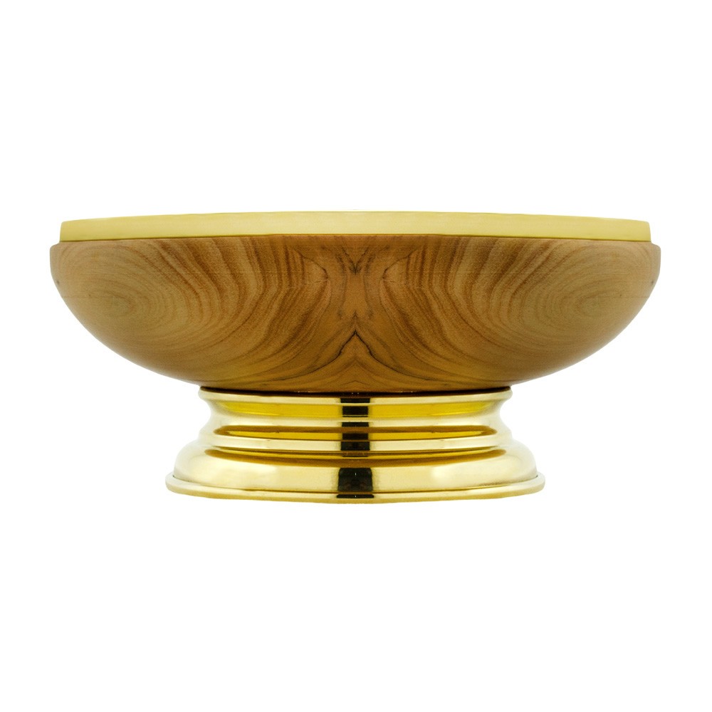 Ciborium bowl in olive wood with silver cup.