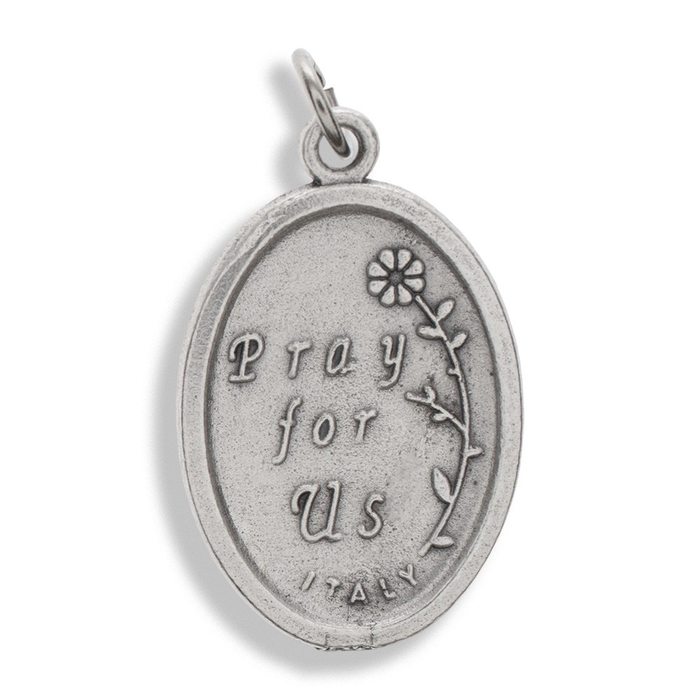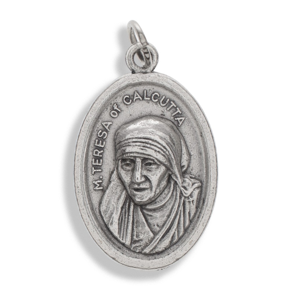 Medal of Mother Teresa of Calcutta made of oxidized silver. The front depicts the Saint, whereas the back features the inscription “PRAY FOR US”.