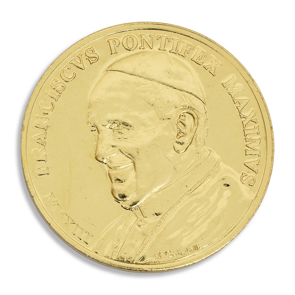 Pope Francis Gold Metal Coin with Papal Coat of Arms on the Back