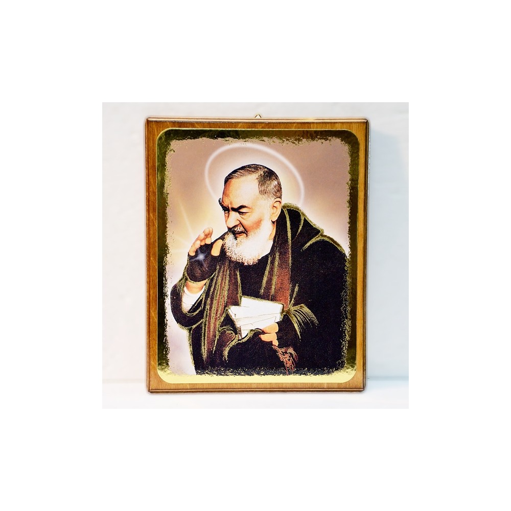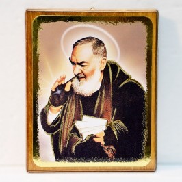 Picture of Saint Pio of Pietrelcina. Image with golden reflections applied on solid wood. Supplied in a box. Made in Italy!