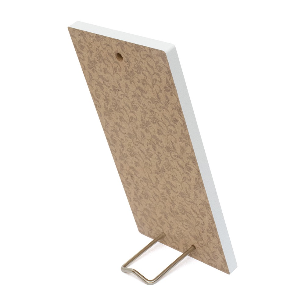 - Features: Metal stand for tabletop display and hole for wall mounting