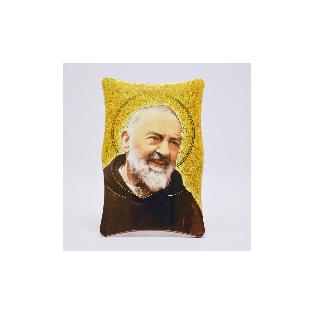 Rounded picture of Saint Pio. This holy picture can be both hung on the wall or placed on a surface.