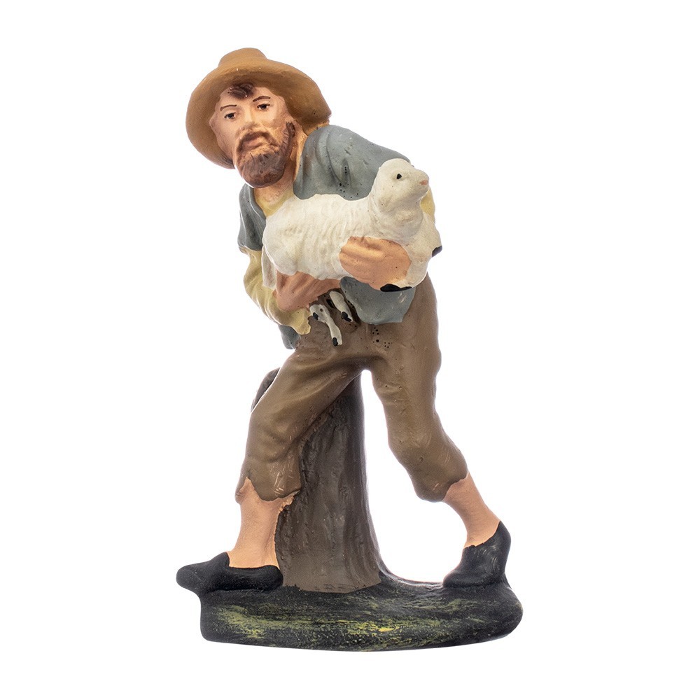 Shepherds for plaster nativity scenes: Elderly shepherd with sheep in his arms 15 cm.