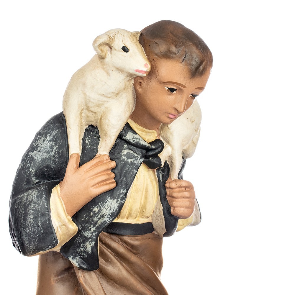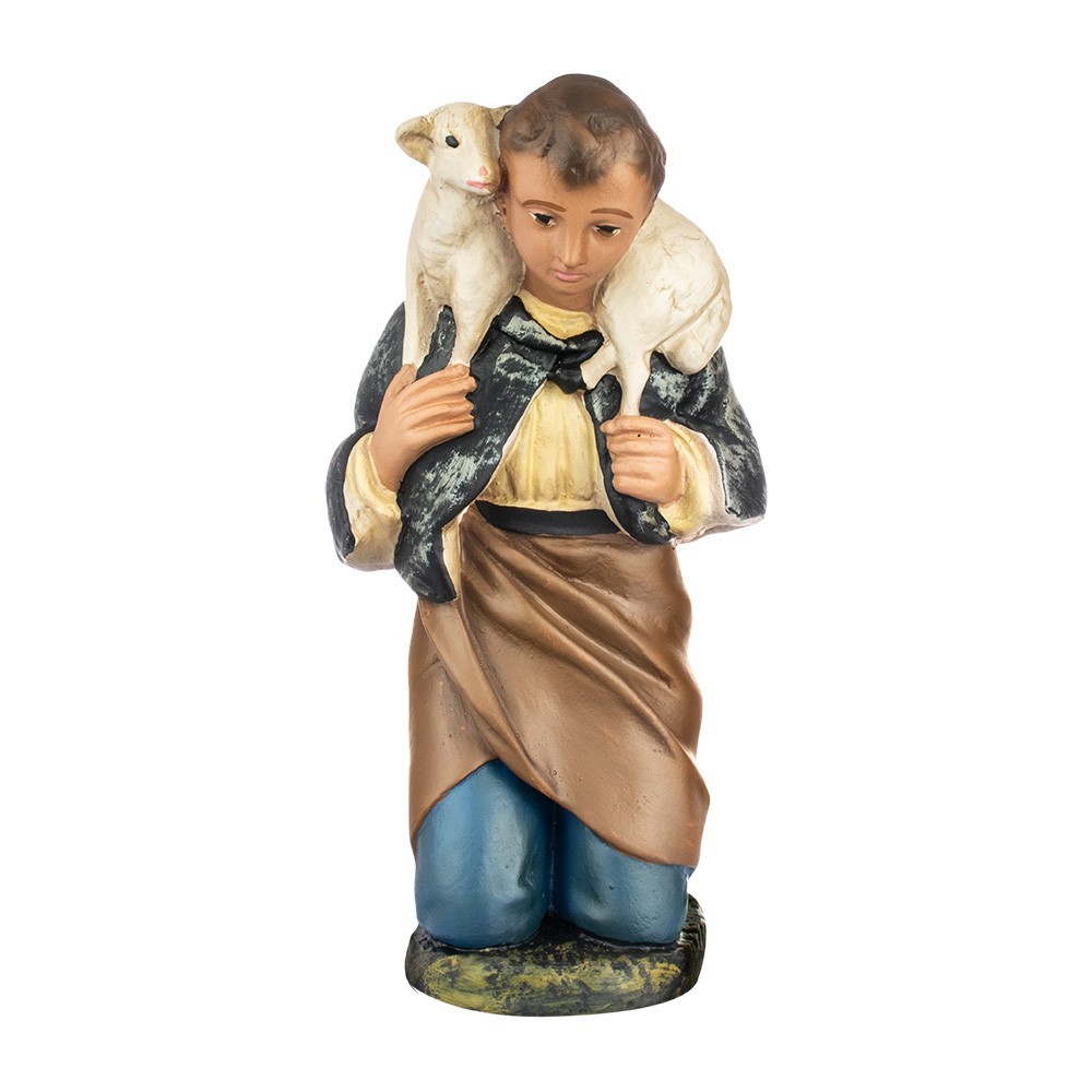 Plaster statue depicting a shepherd with a lamb on his shoulders (20 cm).