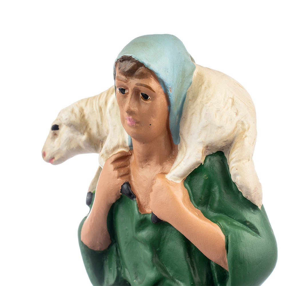 Plaster statue depicting a shepherd with a lamb on his shoulders (20 cm).