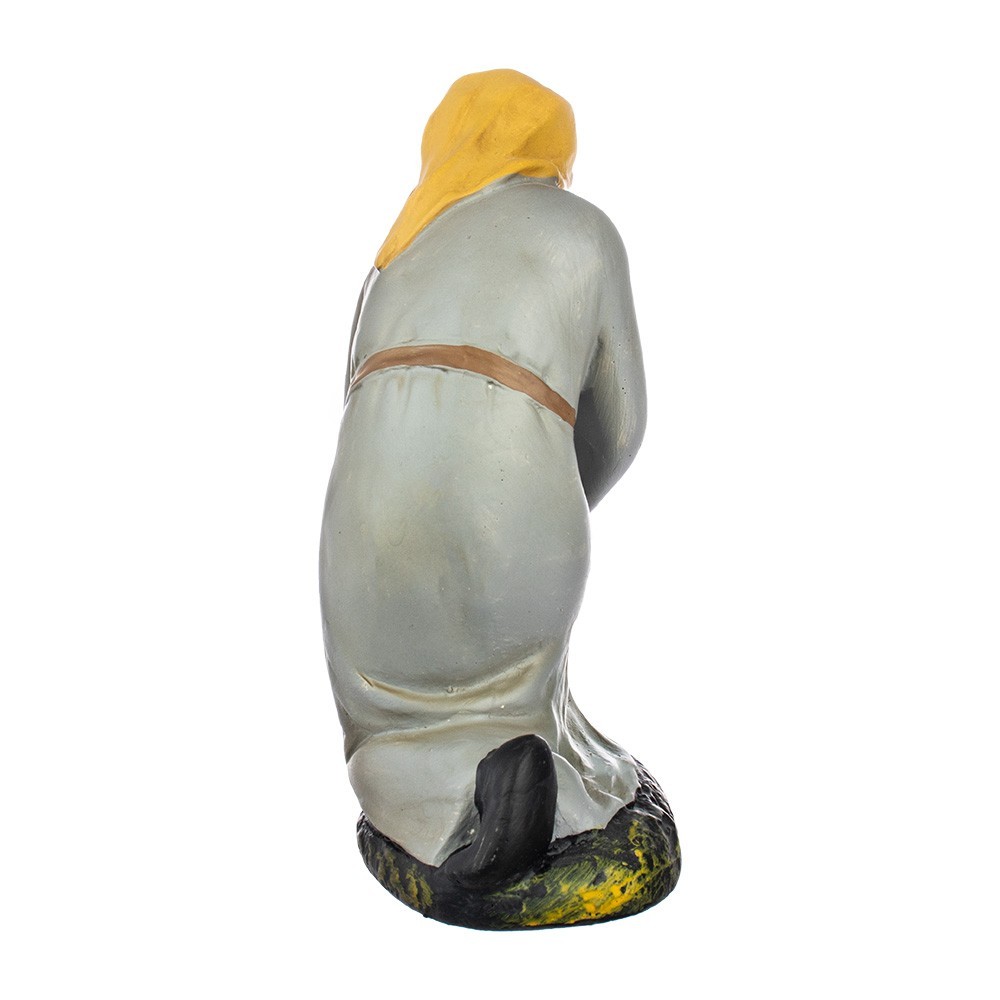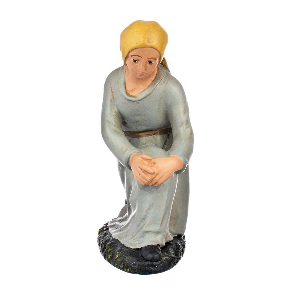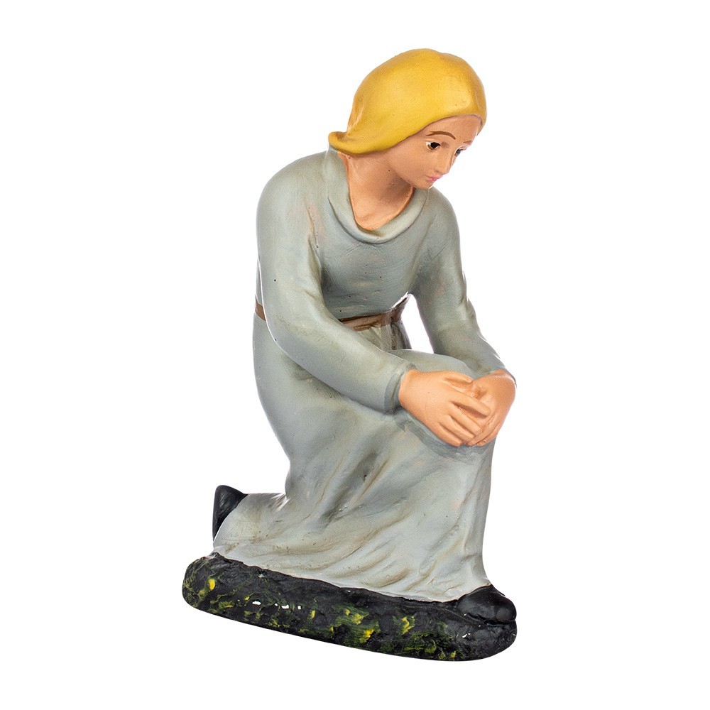 Woman kneeling. This statue is entirely made of plaster and is suitable for 20 cm nativity scenes in plaster. Finely handpainted by the Barsanti firm, which was founded in 1900 by Carmelo Barsanti, who opened a workshop specializing in plaster statues dedicated to sacred art and nativity scenes.