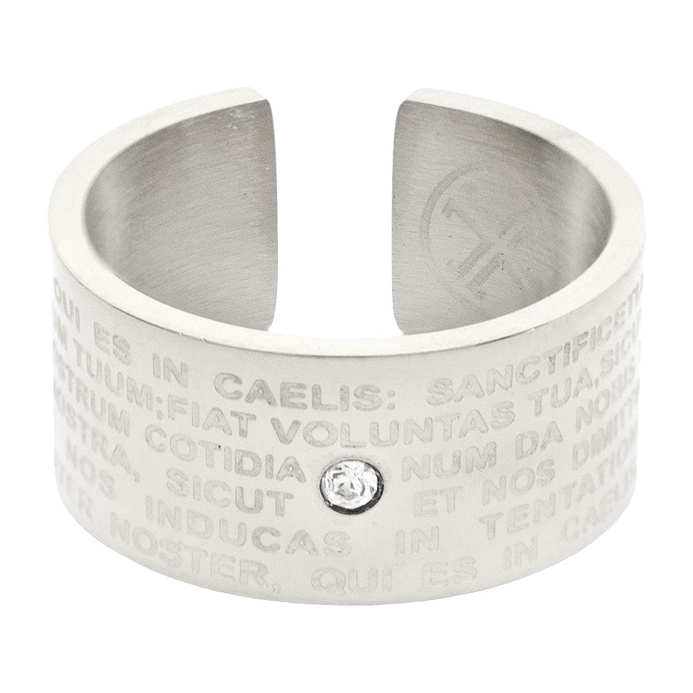 Ring with slightly adjustable opening and Lord’s Prayer (in Spanish) enriched with a zirconia in the middle.
