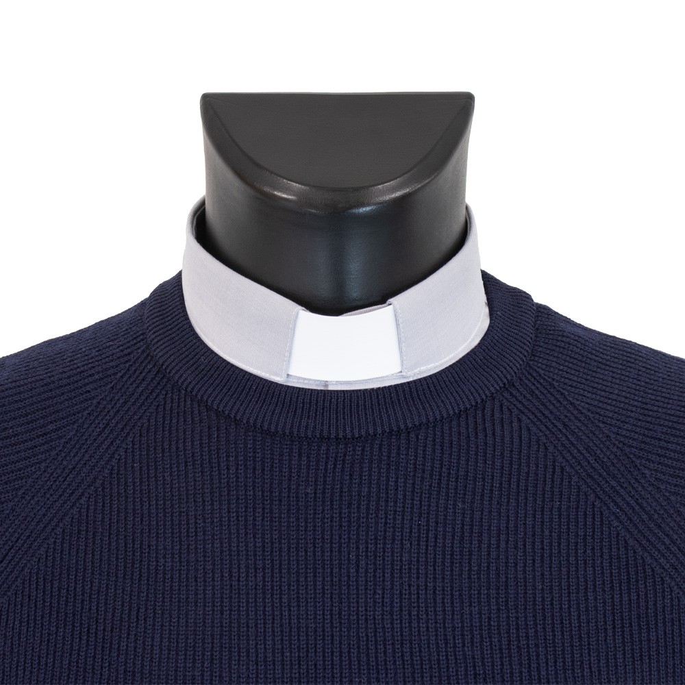 Clergy collar in wool blend with crew neck. Available in black, blue and dark gray.
