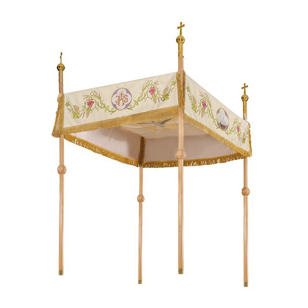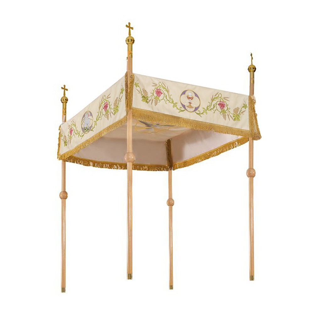 Processional canopy enriched with fine machine embroidery and golden fringes.