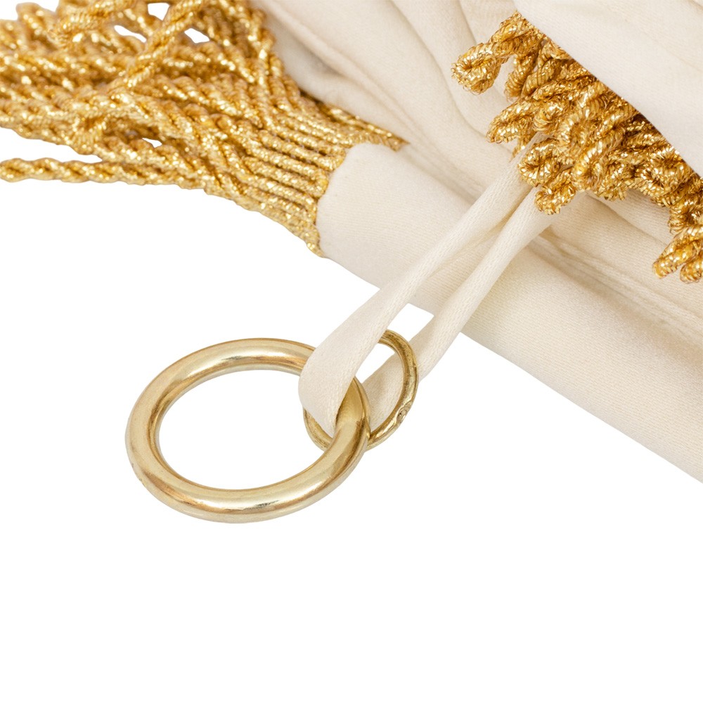 Made of durable polyester and enriched with embroideries and golden fringes.