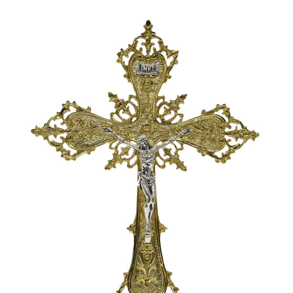 Shipping in 2 weeksBaroque processional cross in two-tone brass.