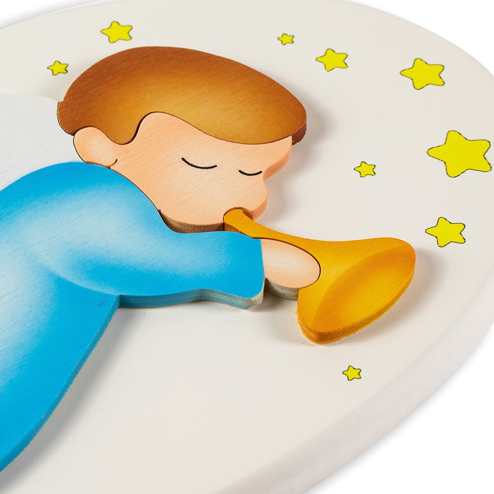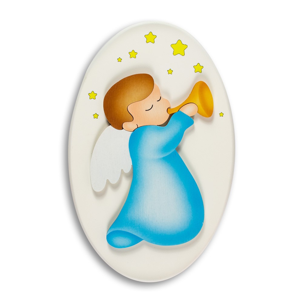 Lovely picture of oval shape with bas-relief depicting an angel playing the trumpet.