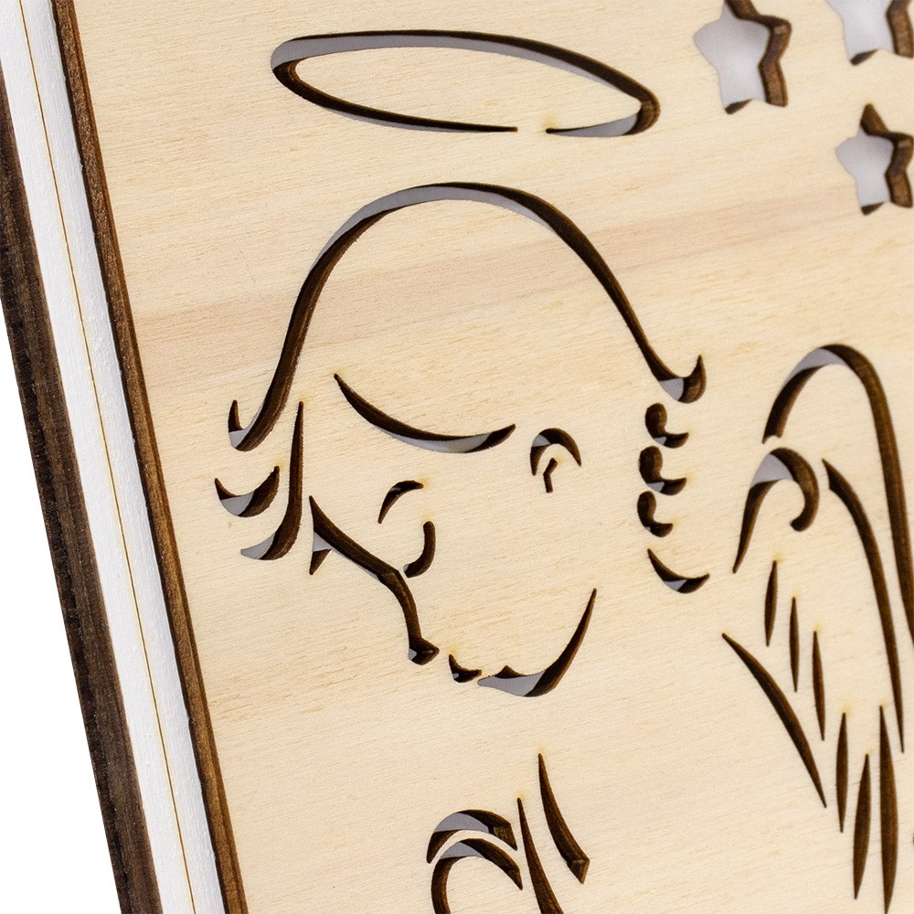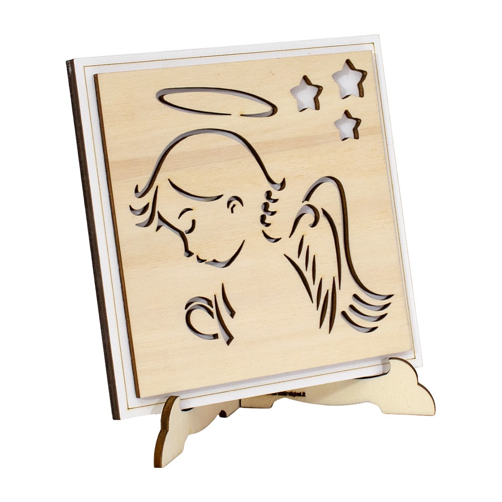 Wall picture in wood depicting a praying angel, size 15x15 cm.