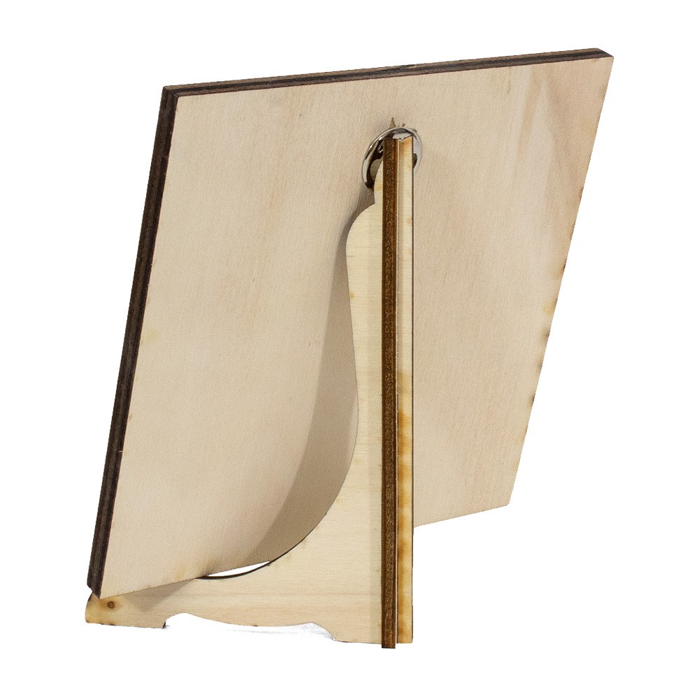 It can be hung on the wall or placed on a surface, since it is provided with a hole and a tripod in wood.