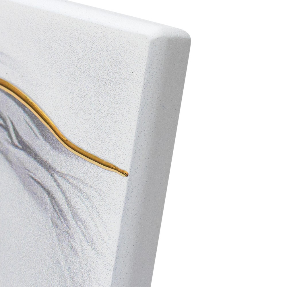 This wonderful picture is made on a white panel in MDF wood, enriched with ornaments in golden metal. Complete with support foot in metal in order to place in on a surface and hole in order to hang it.