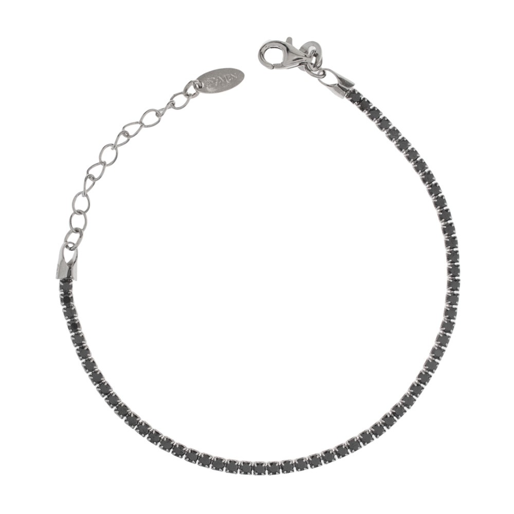 Tennis style bracelet in silver with black zirconias.