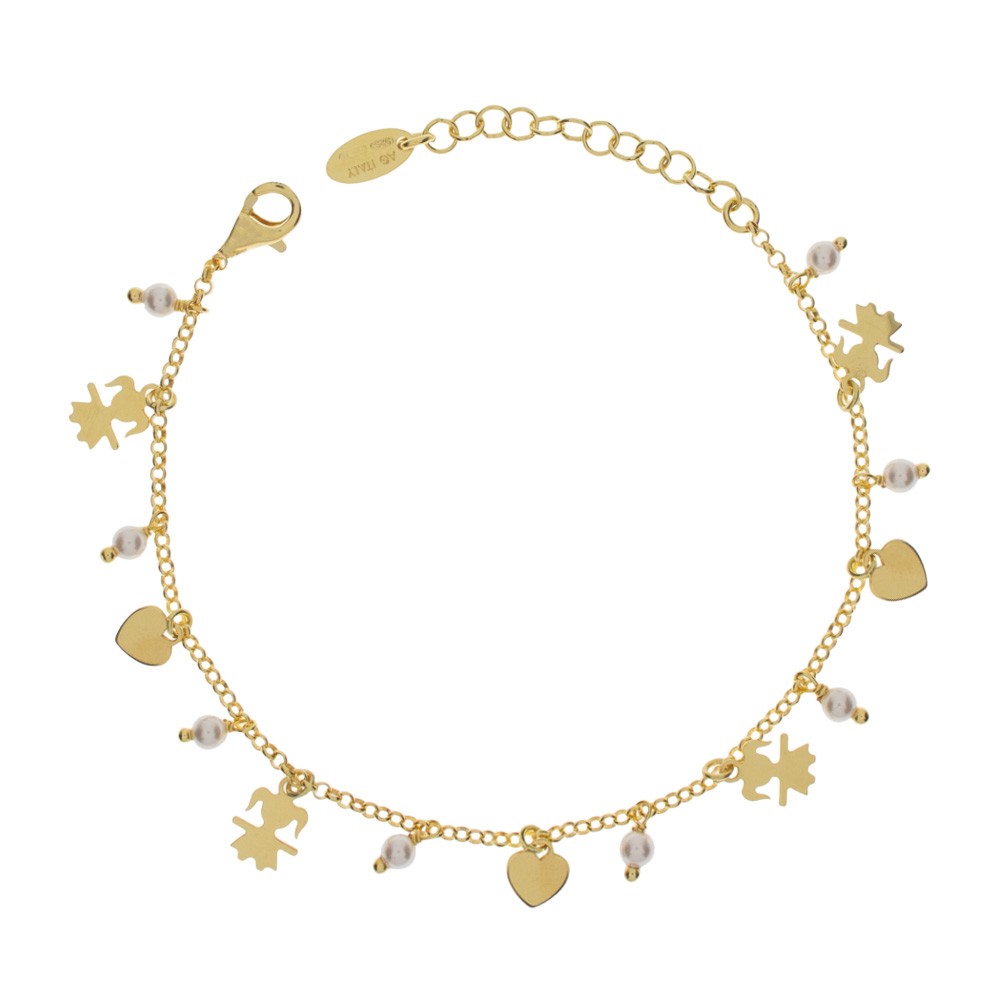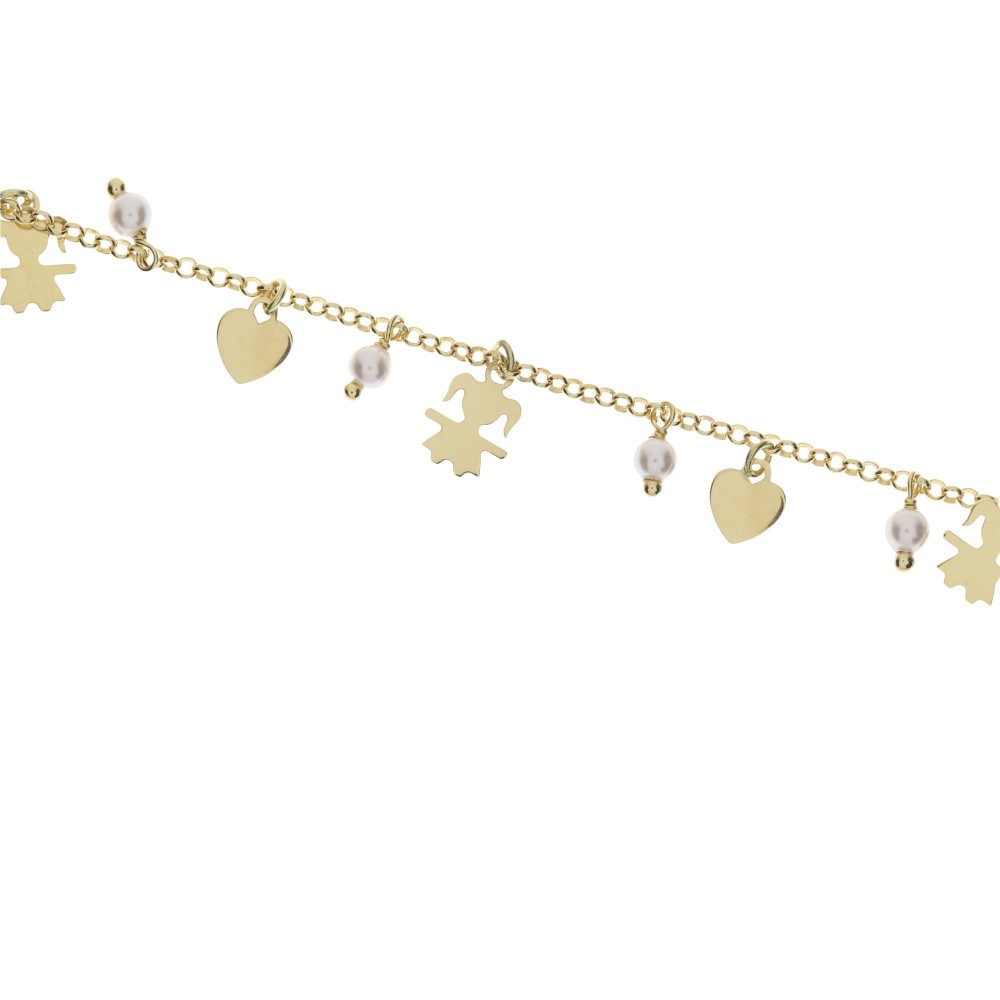 Amen Collection: bracelet in 925 silver with swarovski pearls and pendants in the shape of hearts and children.
