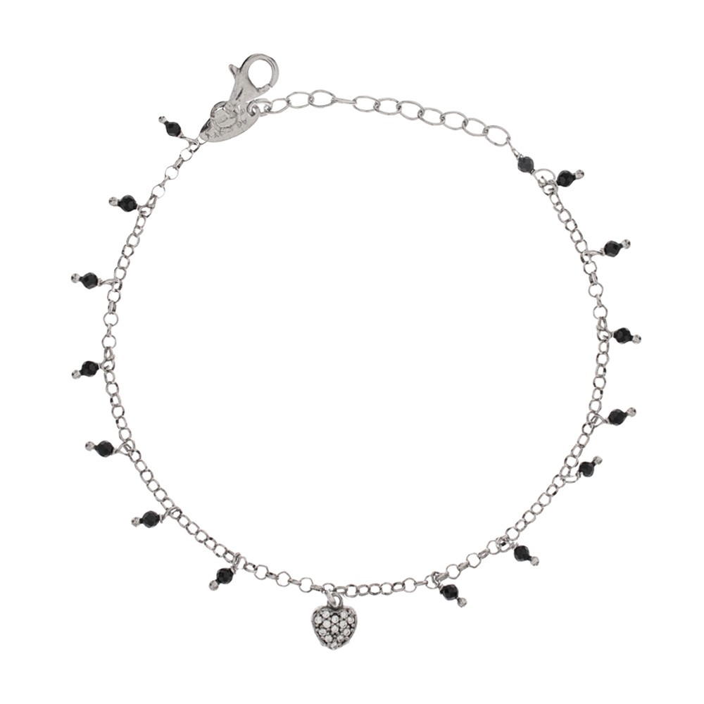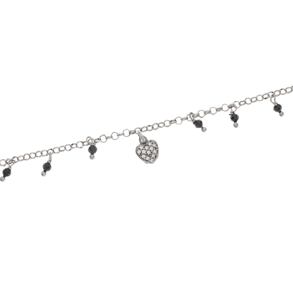 Bracelet with black crystals and heart-shaped pendant with zirconias, Amen jewelry collection.