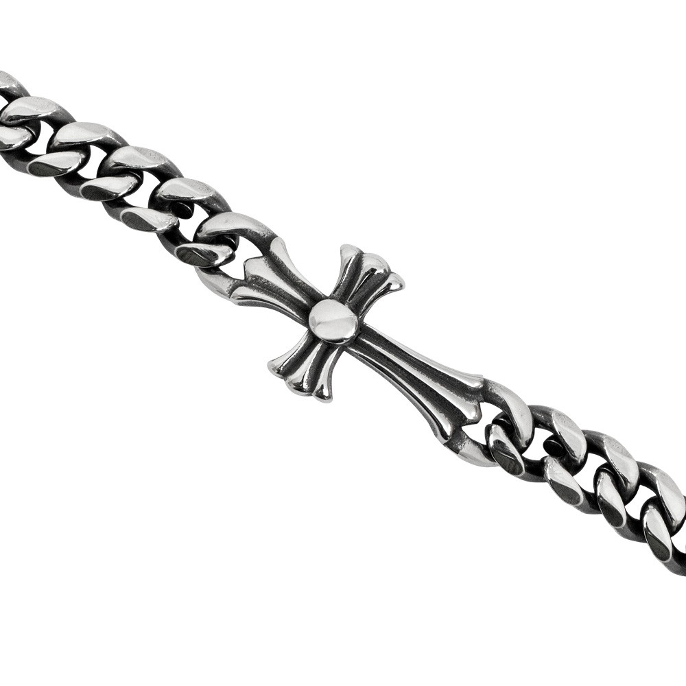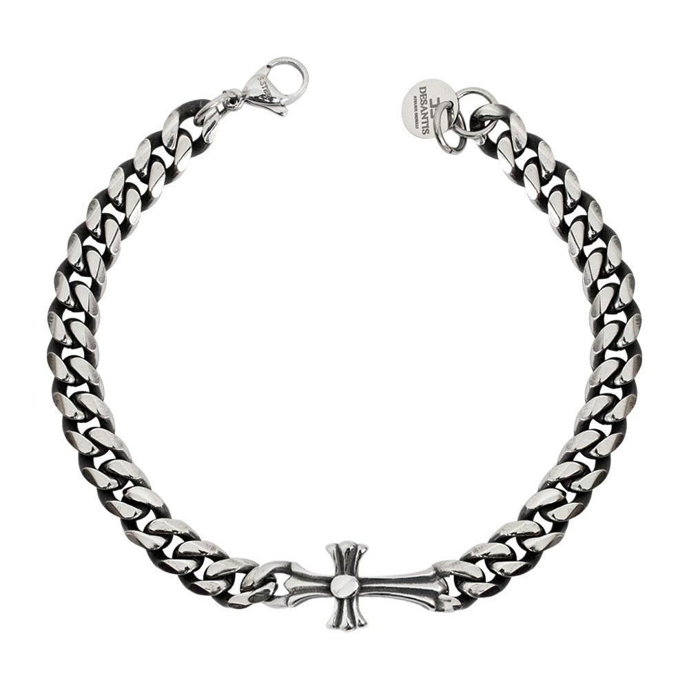 Men’s bracelet entirely crafted from brushed oxidized stainless steel, featuring a contemporary design. Enriched with a rigid cross and equipped with a practical hook clasp for a comfortable and secure fit.