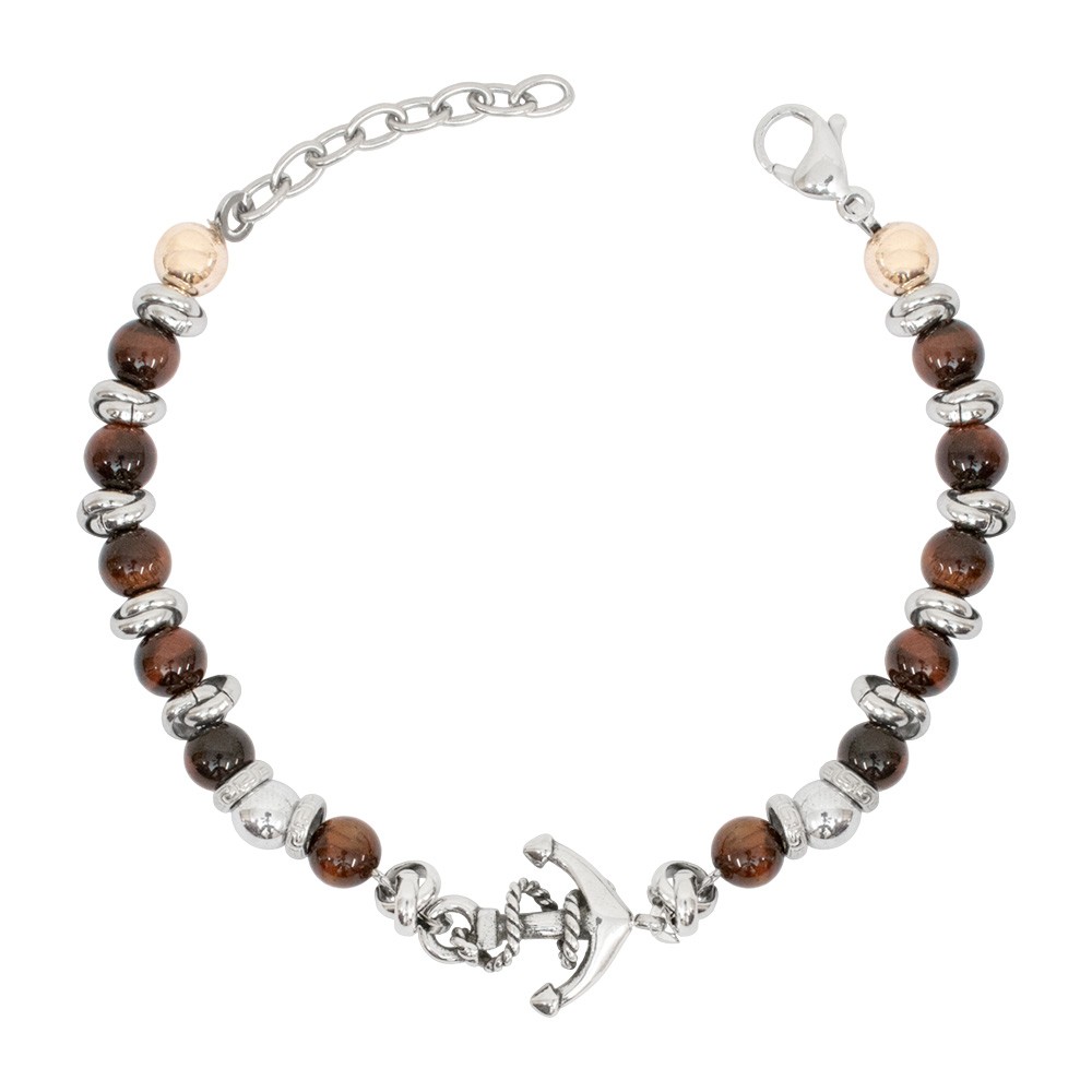 Steel bracelet with brown natural stones and Anchor symbol. Includes an elegant gift box with matching shopper.