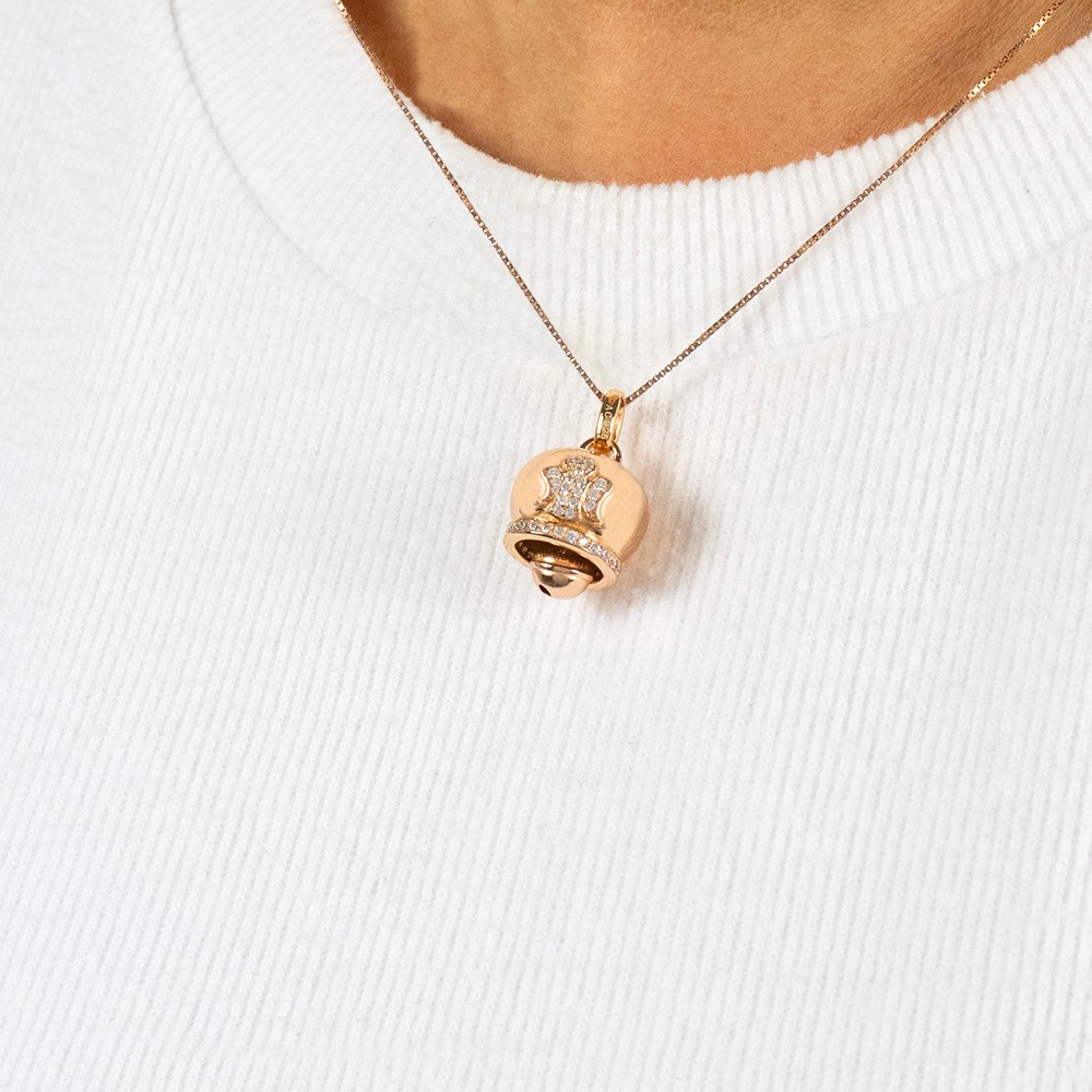 Woman necklace with bell-shaped pendant, AMEN collection.