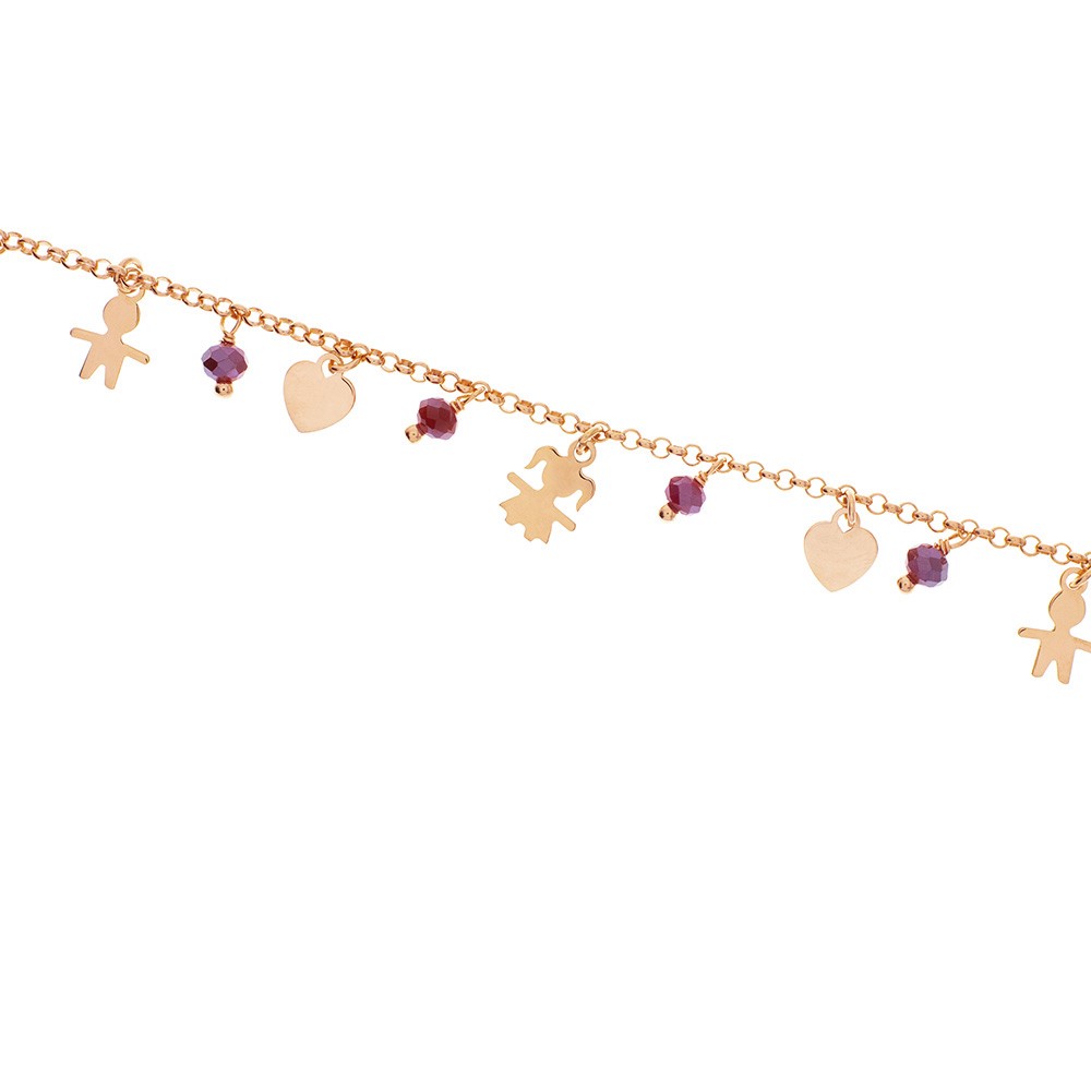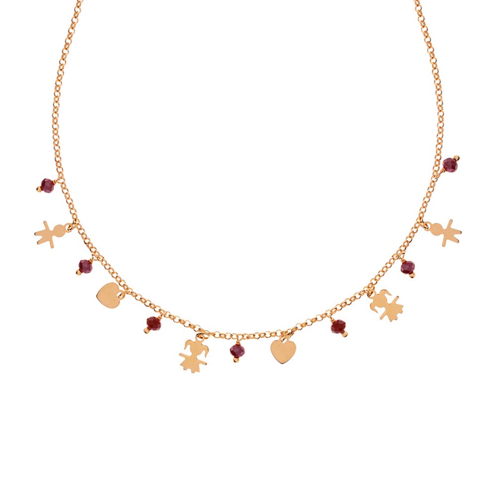Amen collection: necklace in 925 silver with ruby crystals and pendants in the shape of children and hearts.