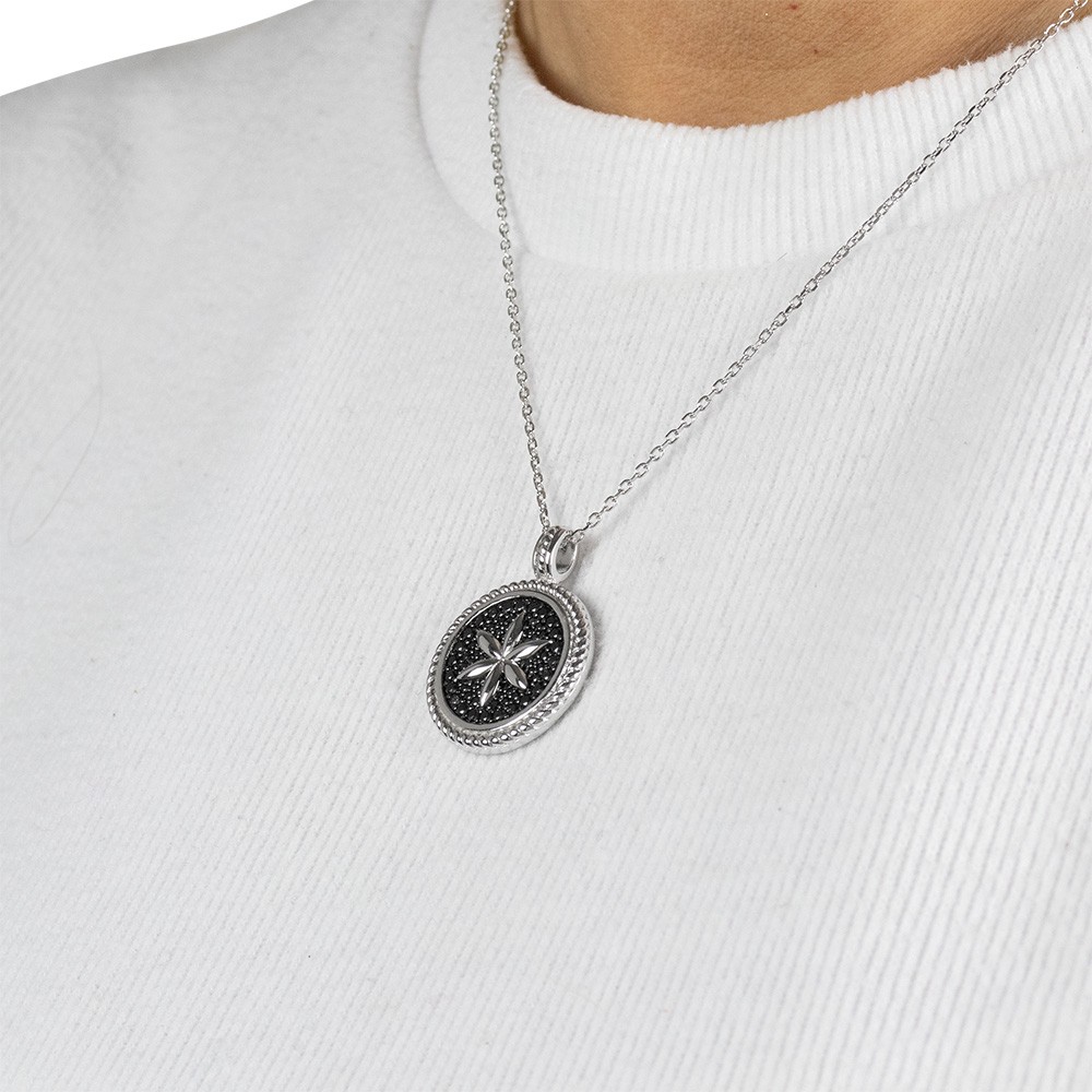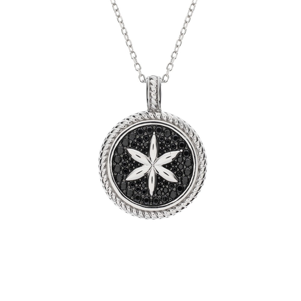 Amen Innovation – New collection Fiore della Vita: Woman necklace with “flower of life” medal pendant and black zirconias.
