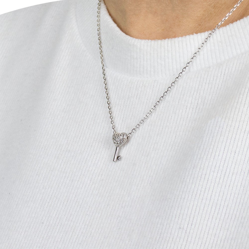 Woman necklace in rhodium-plated 925 silver with chain and heart, Amen collection.
