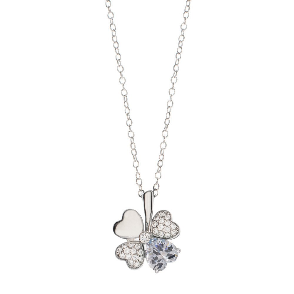 Necklace with four heart clover pendant and zirconias, Amen jewelry.