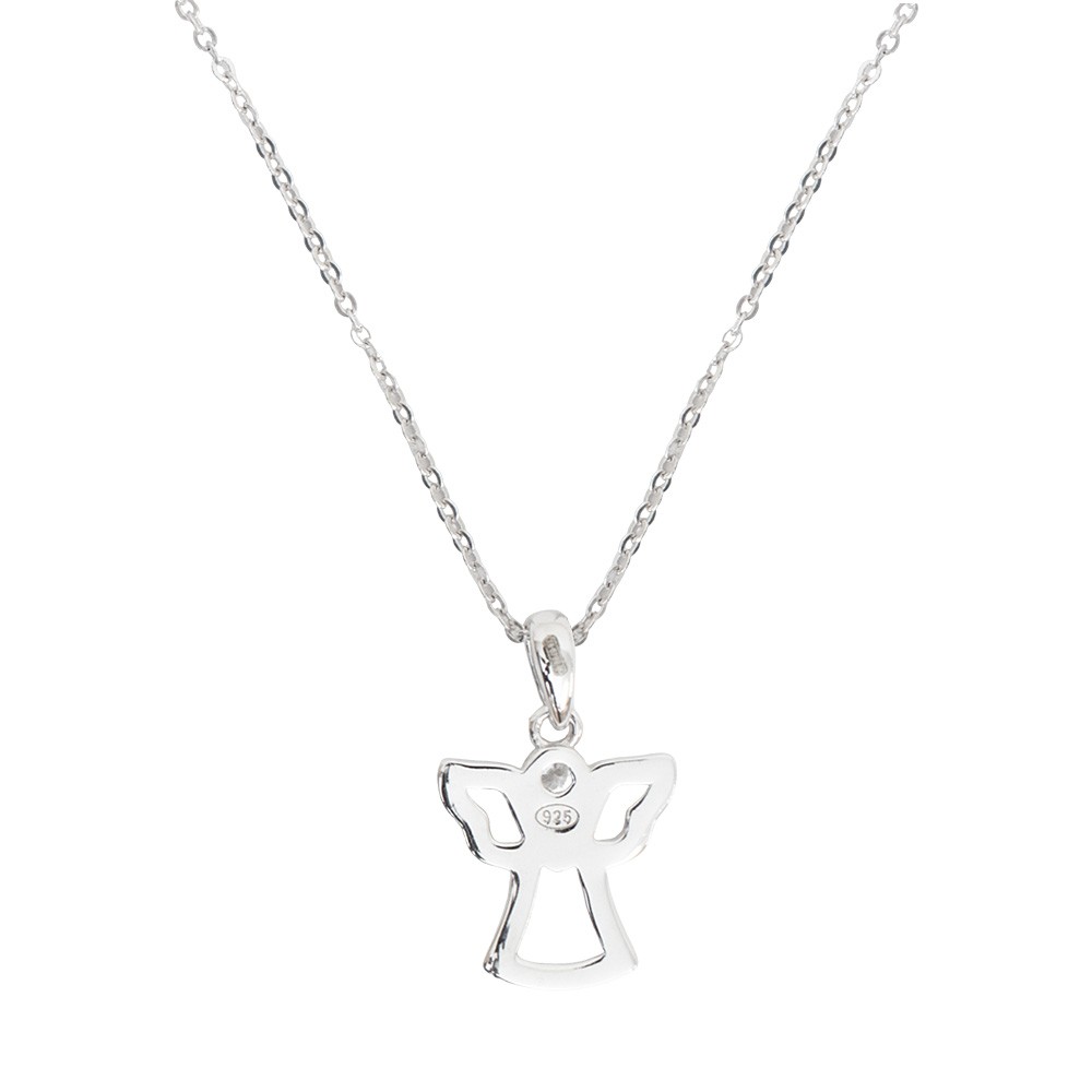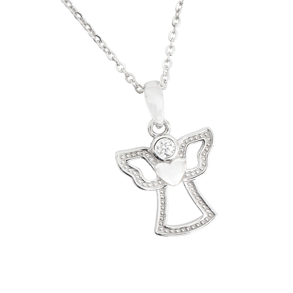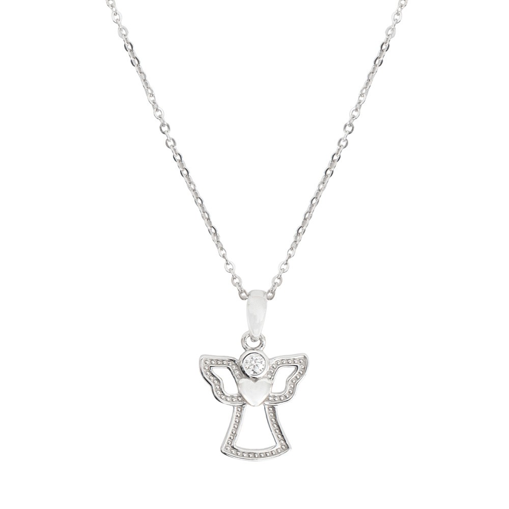 This necklace is complete with an Angel-shaped pendant and a heart in the center, enriched with white zirconias. Adjustable length 40+5 cm.