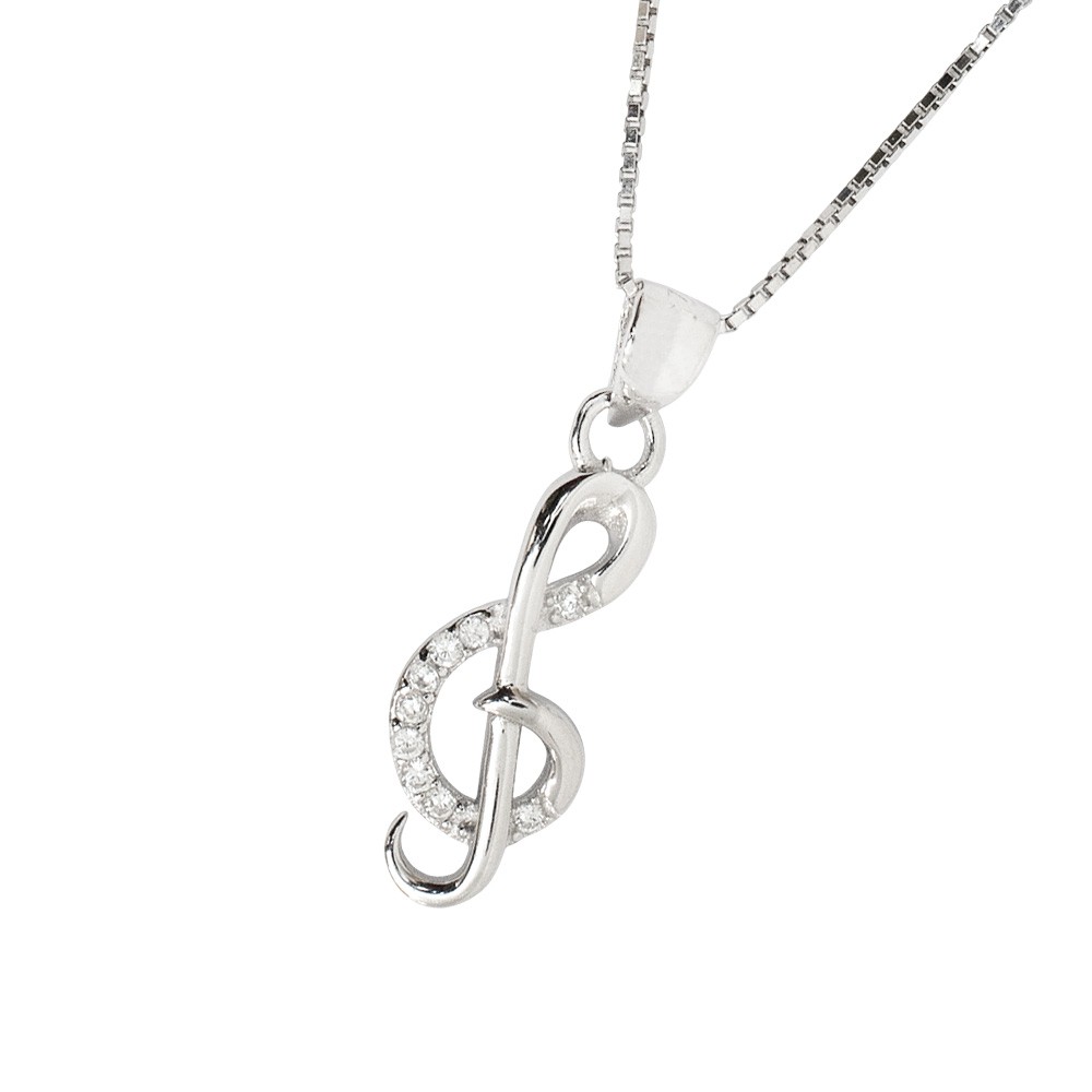Necklace in rhodium-plated 925 silver with a treble clef pendant adorned with zirconia. Includes gift box and shopper