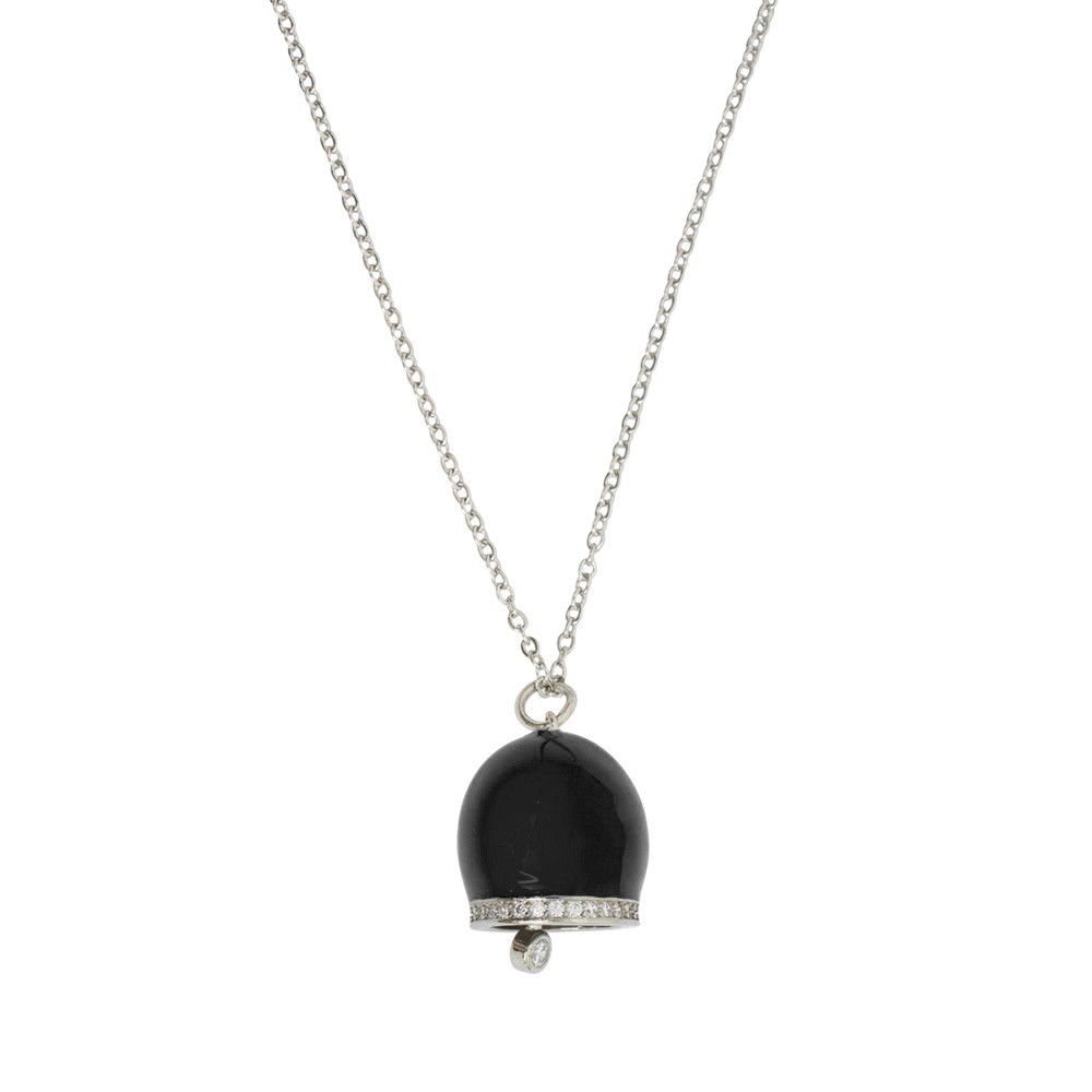 Black Enameled Bell Necklace in Steel with Shiny Zirconia – Gift Box Included