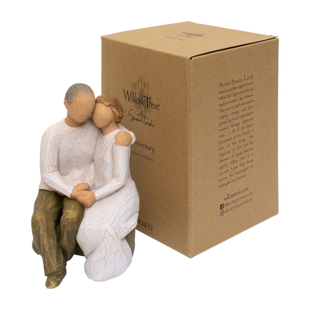 The ANNIVERSARY statue from the Willow Tree collection, designed and created by artist Susan Lordi, depicts a loving couple holding hands—a symbol of love and affection.