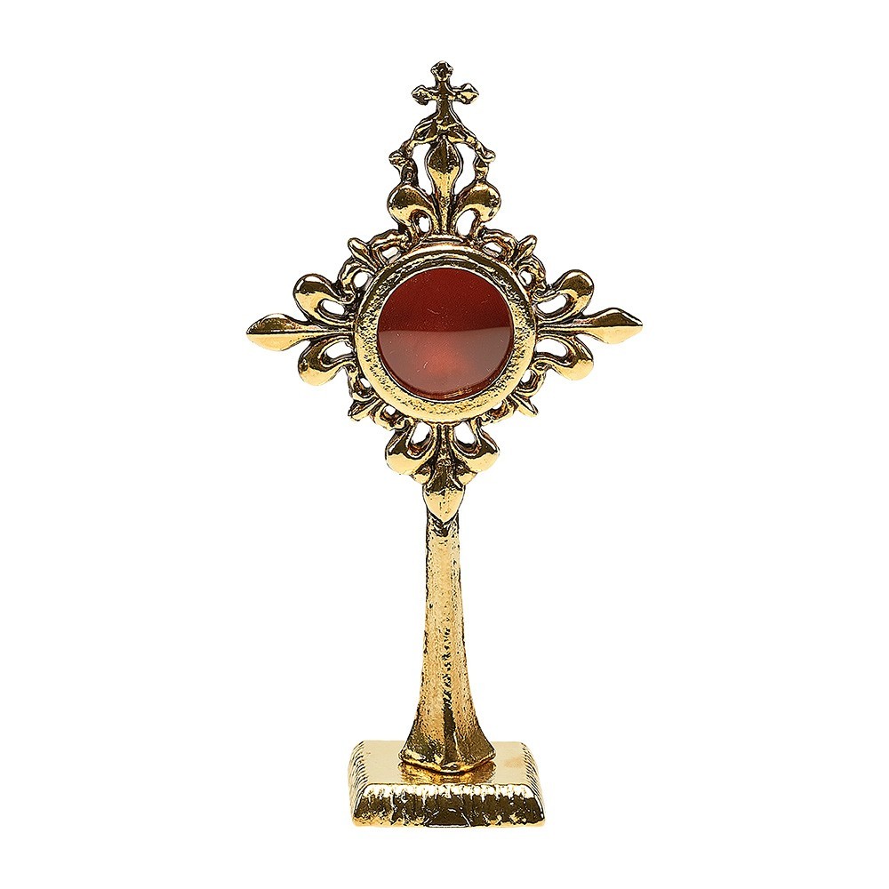 Shipping in 2 weeksReliquary in golden brass with red bottom.