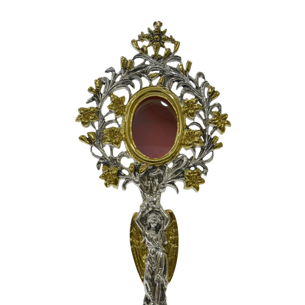 Reliquary in bicolor brass with Angel and flowers decoration.