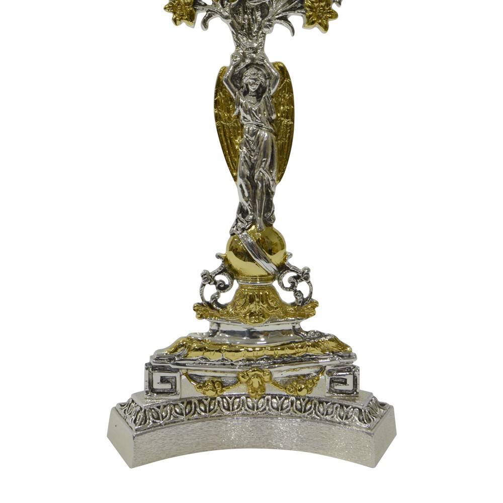 Made of golden and silver-plated brass, decorated with angels of gold color.