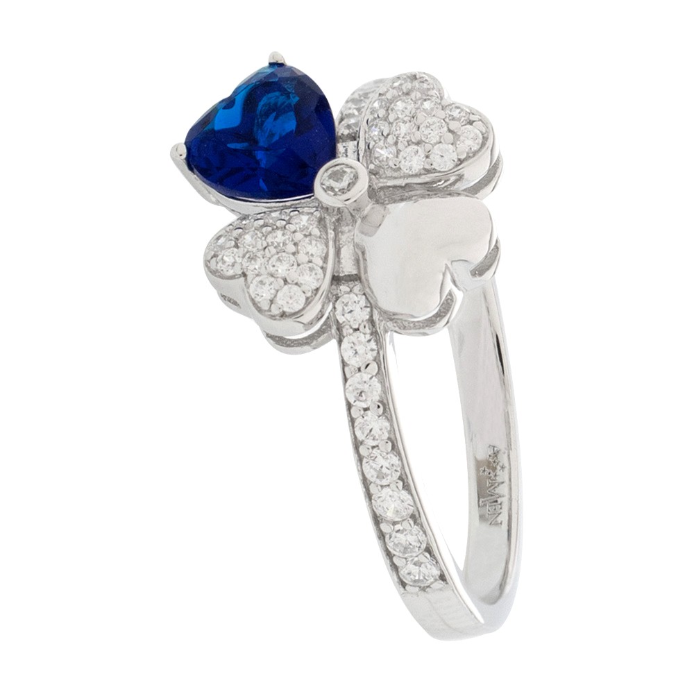 This ring is entirely made of 925 silver and is made up by a four heart clover with four silver hearts (a blue one, two with zirconias and one in silver).