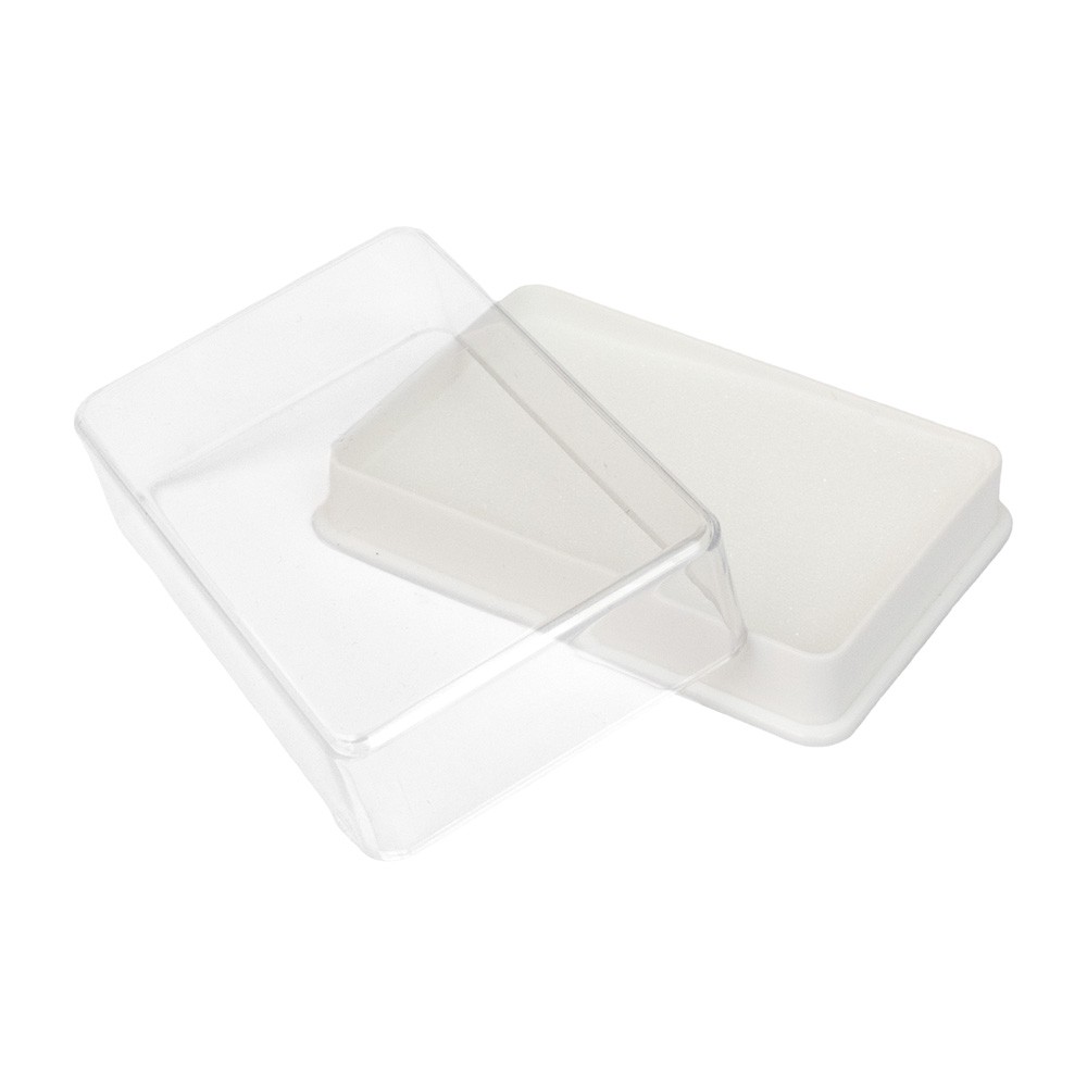 Square transparent plastic box, dimensions 3.5x3.5 cm x h 1.3 cm.