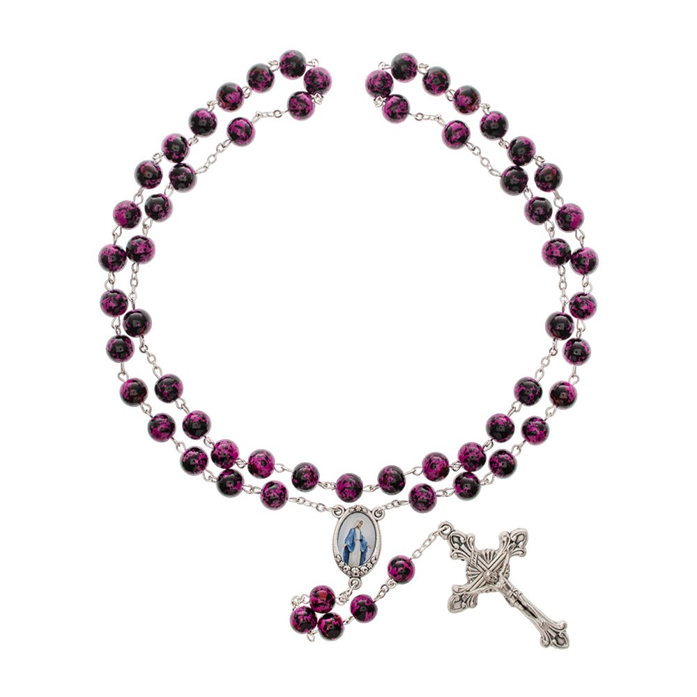 The grains are round and have a diameter of 6 mm; they are held together by a silver metal chain. Complete with centerpiece and cross.