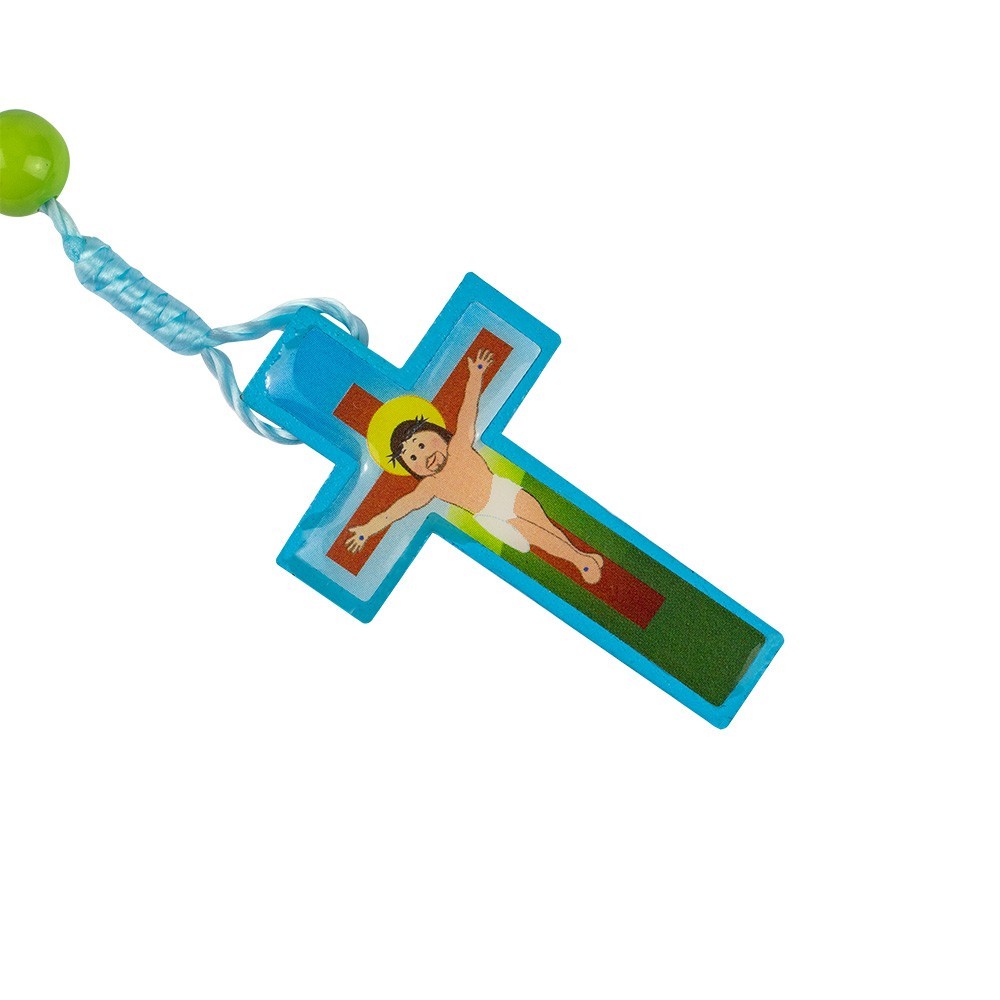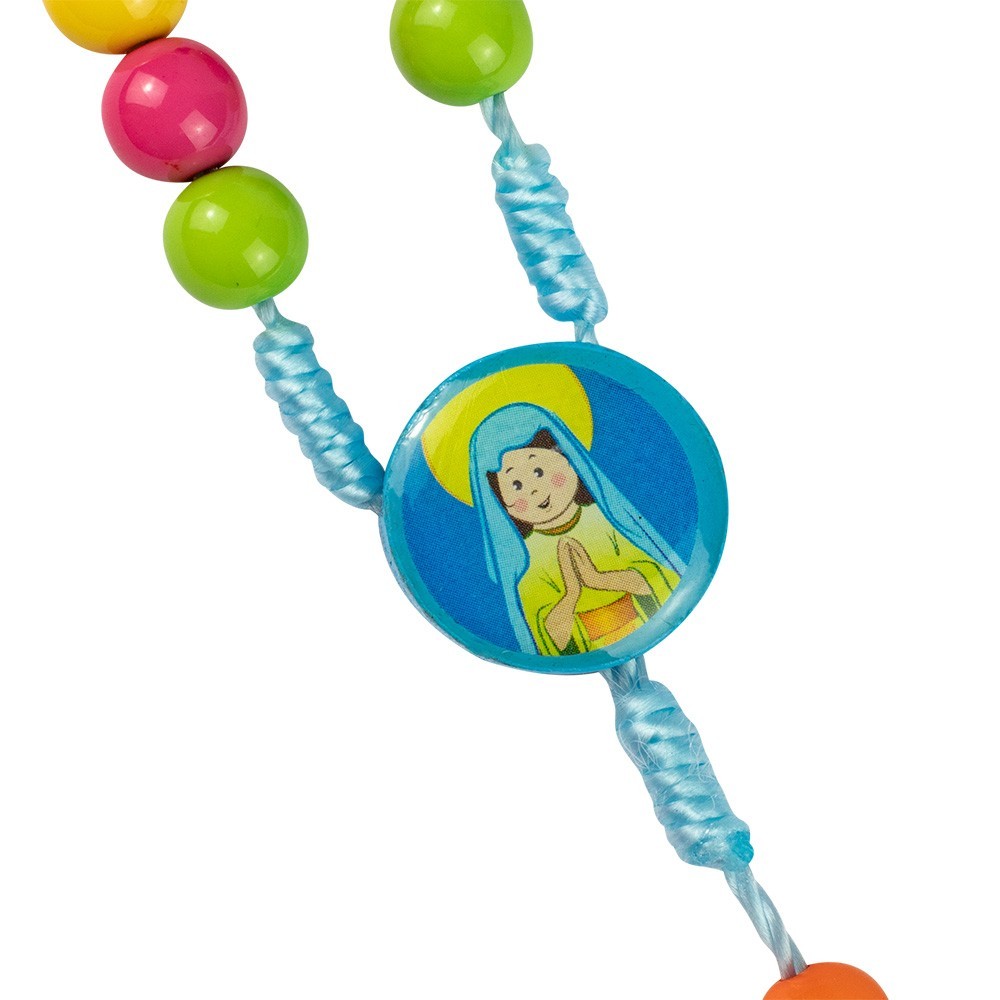 "My Rosary" tin box with a beautiful, colorful rosary inside, perfect for children. The rosary is made with cord and round, colorful beads.