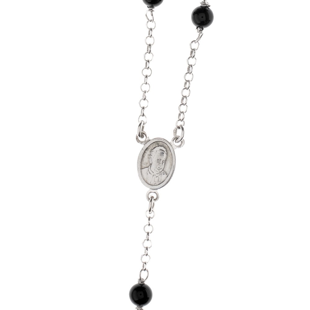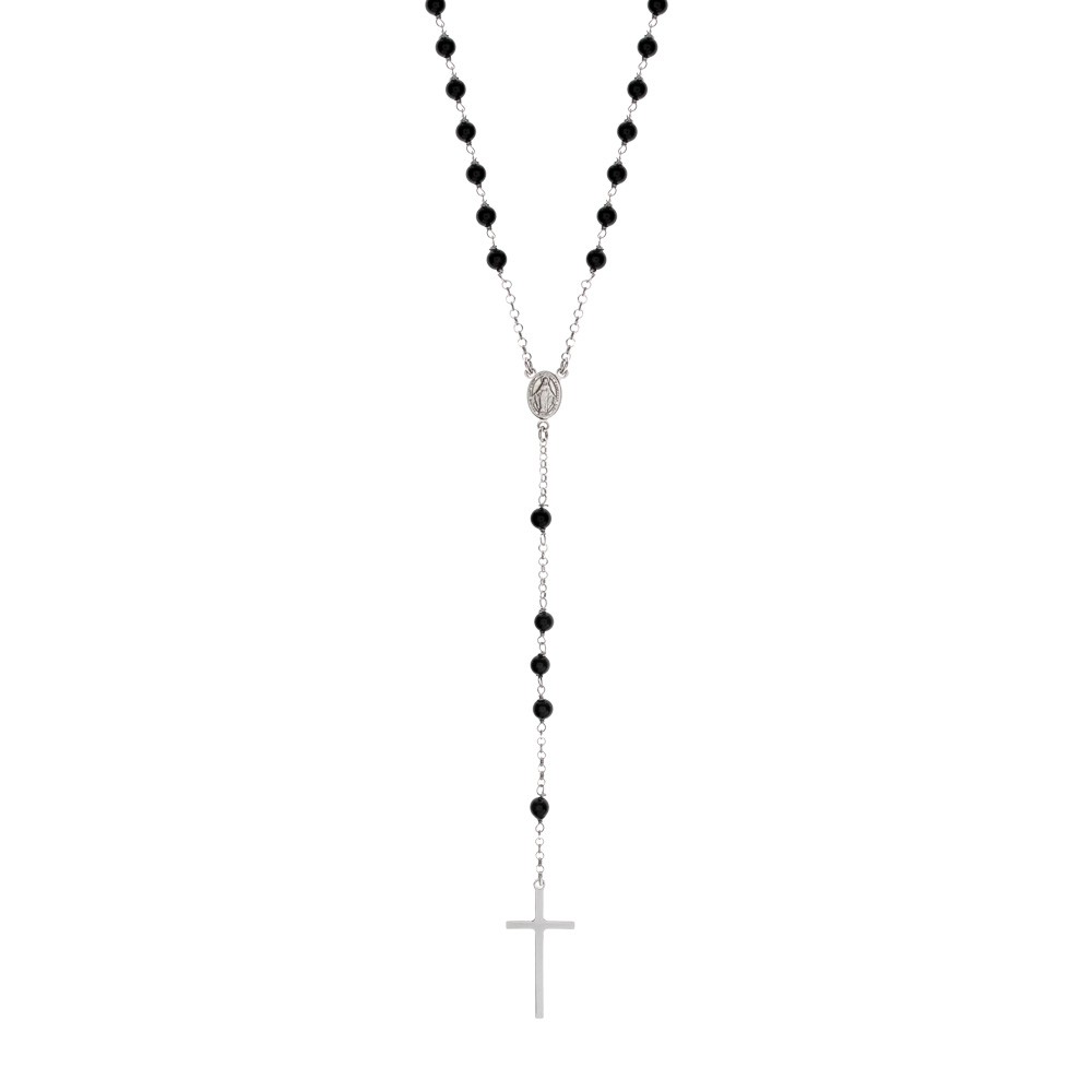 Amen Collection: rosary necklace in rhodium-plated 925 silver with cross-shaped pendant and medal.