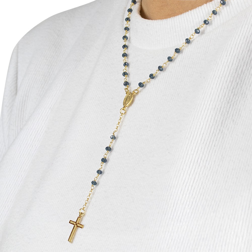 Classic 925 Gold-Plated Silver Rosary with Faceted Crystal Beads. Includes gift box and shopper.