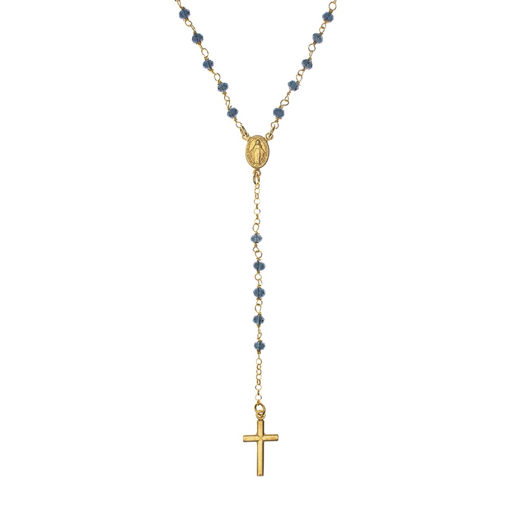 Classic rosary necklace in gold-plated 925 silver with crystals, Amen Collection.