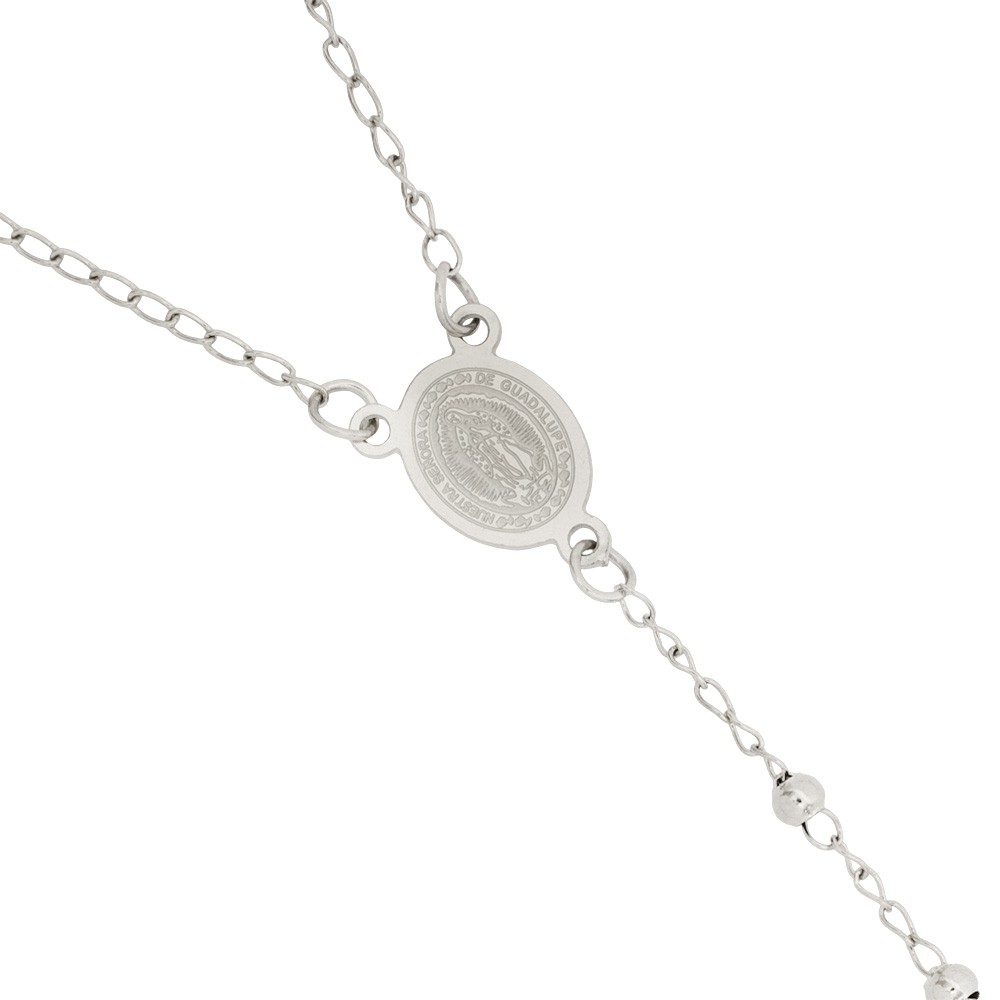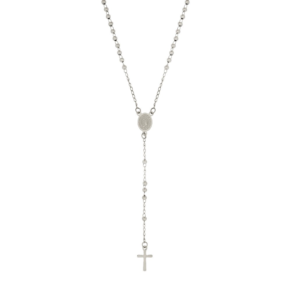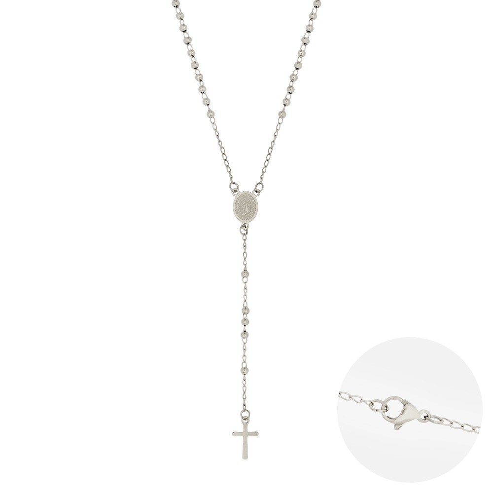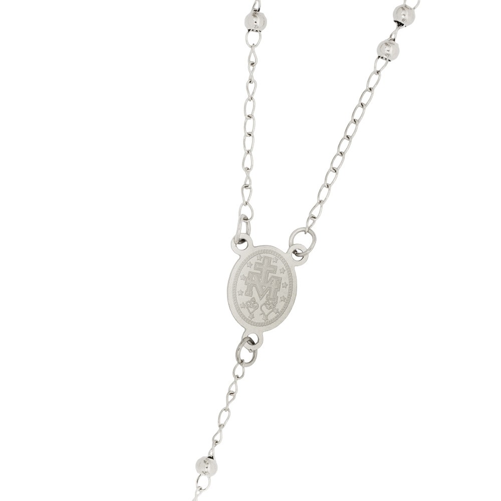Rosary necklace in silver-plated steel with mini round beads, Miraculous medal and cross.