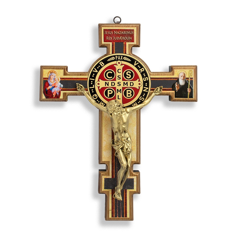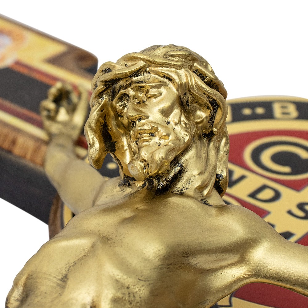 Saint Benedict wall crucifix (20.5x12.5 cm) made of wood with Body of Christ and silver-plated medal. Comes with a box.