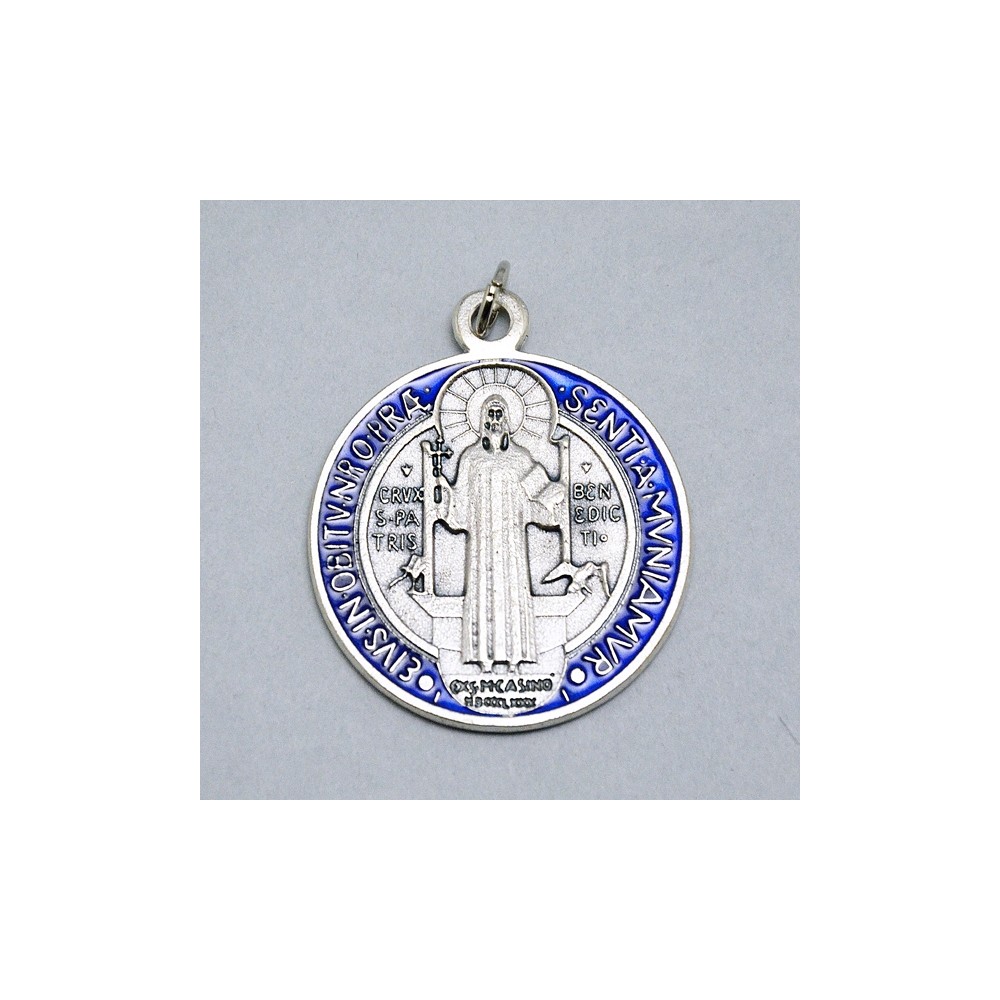 Cross medal with symbol of Saint Benedict in silver metal, enameled on both faces. This religious medal is the best-selling medal, second only to the medal of Our Lady Of Miracles. Packed in a bag.
